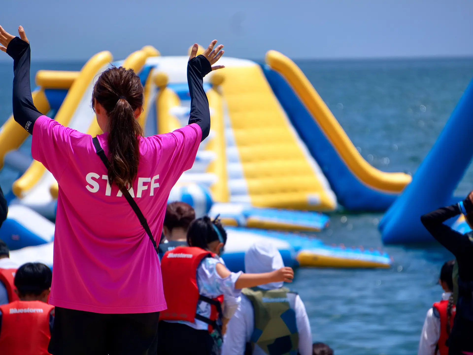 最近、SNSで話題の水上アスレチック「御殿場ウォーター亀ハウス」!