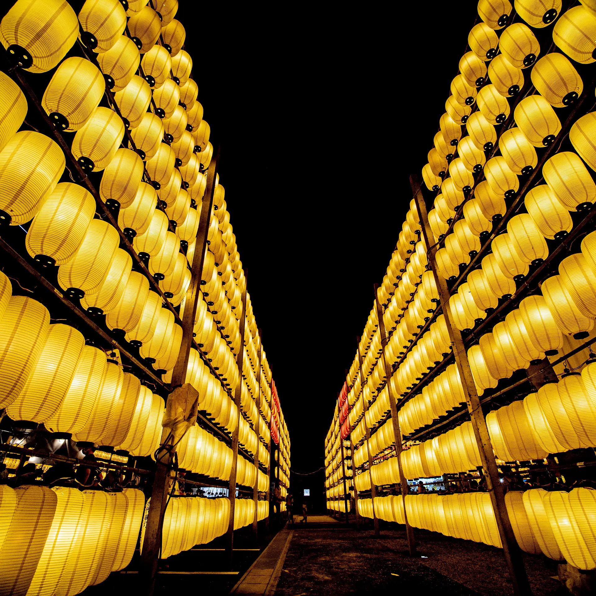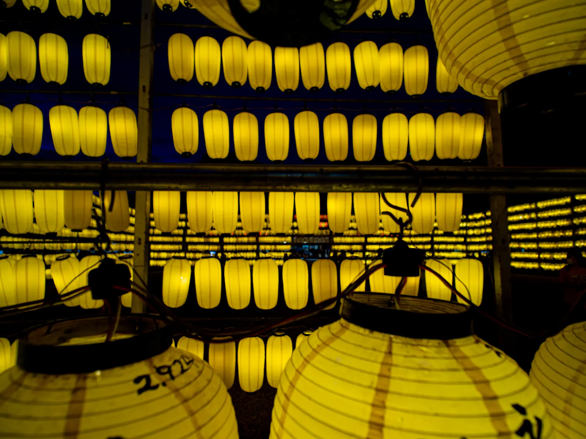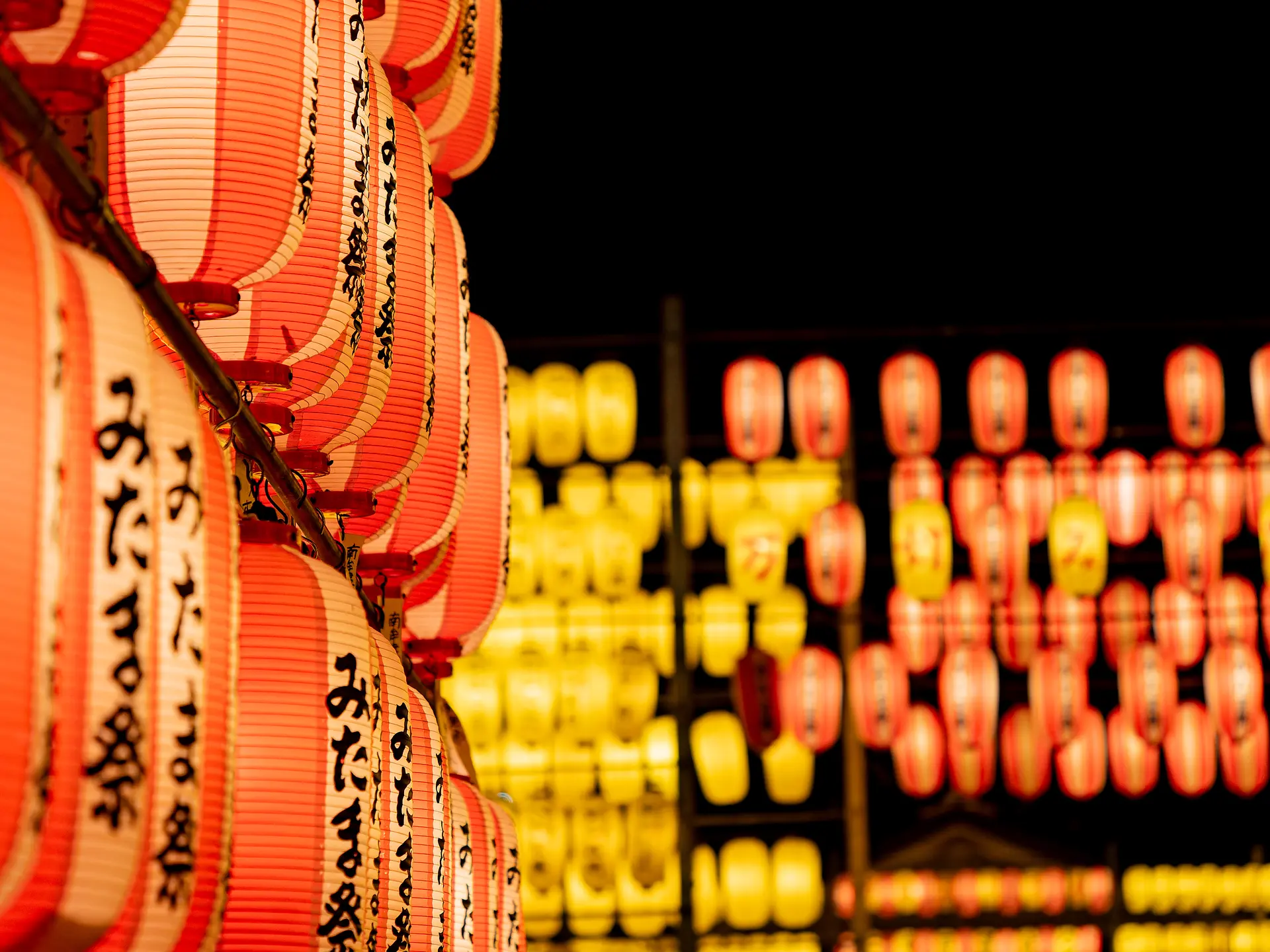 広角や望遠で、画面いっぱいに提灯で埋めて撮ってみてはいかが。