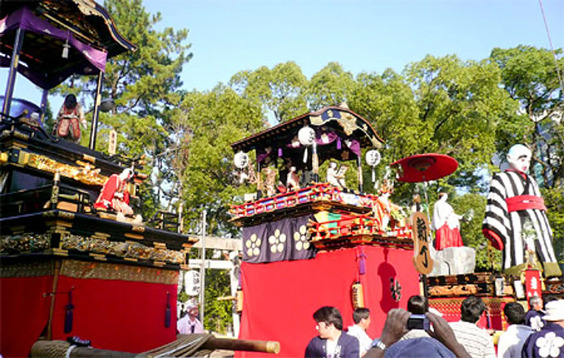 お祭り当日は、諏訪新道、三滝通りの一部が車両通行止めとなり、山車の演技や太鼓の演奏等が行われます。