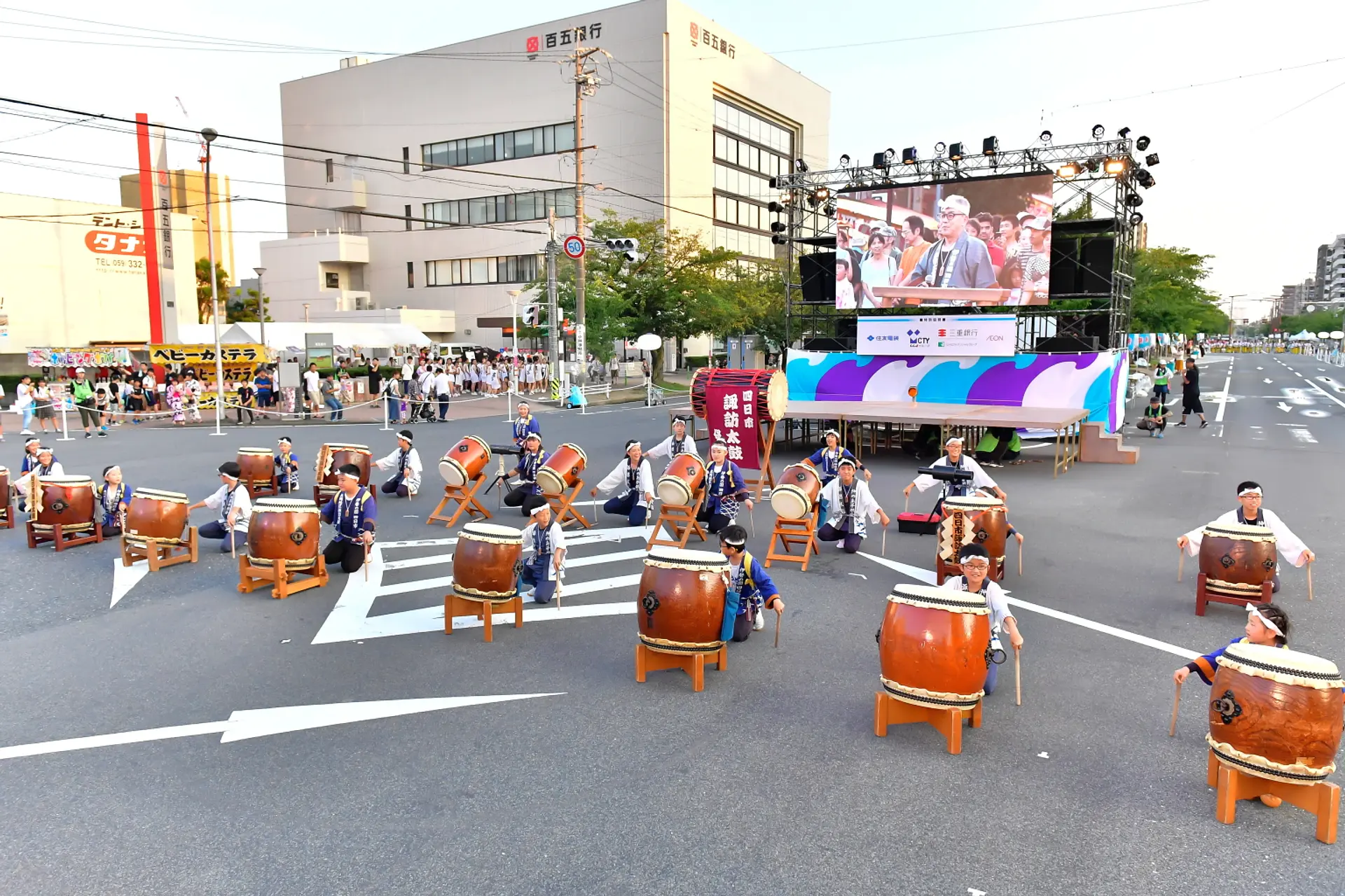 また、大人顔負けの迫力ある「子ども諏訪太鼓」、「大四日市まつり音頭」に合わせて踊る「市民総踊り」は、市民一体となっておまつりが最高潮に盛り上がります!!