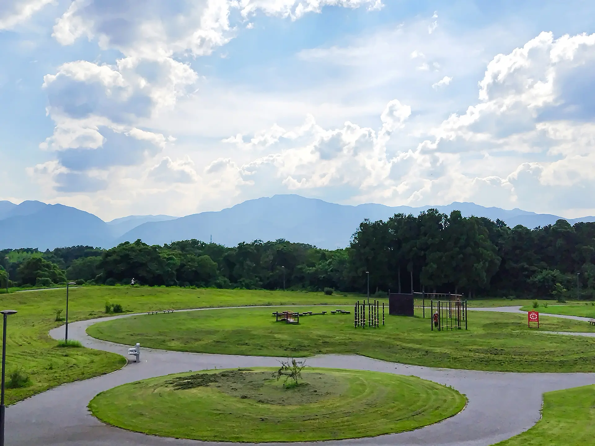 北勢中央公園は、サッカー場60個分にもなる広〜い県営公園です。そんな広い公園内には、大人から子供まで楽しめる多目的広場、芝生広場があります。さらに、それぞれ広場からは、藤原岳や御在所など鈴鹿山脈を眺望することができます。他にも、沢の森エリアや自然探検エリアなど、森林浴も楽しめる自然豊かなエリアもあります。