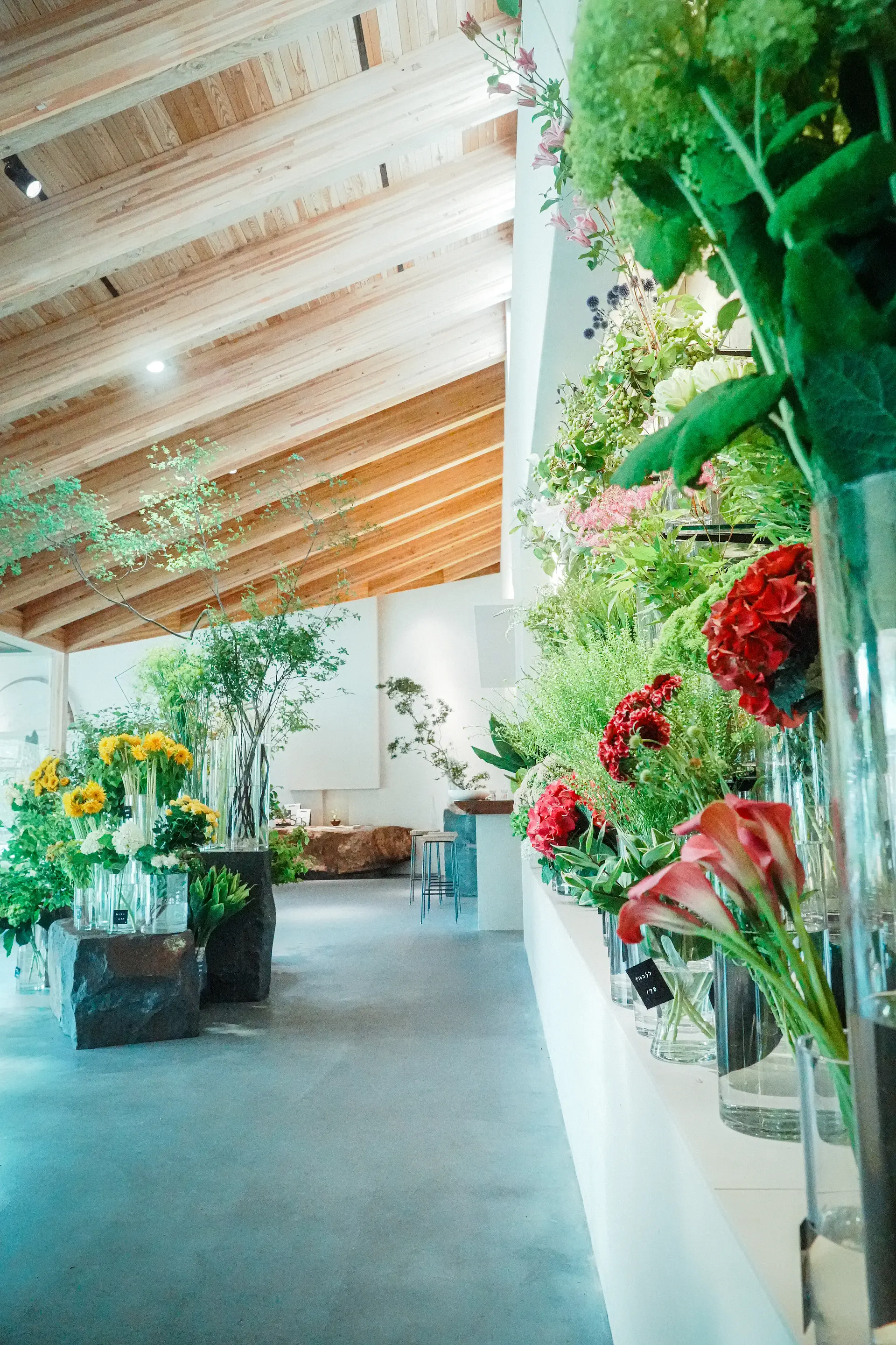 店内の広々とした空間と生花の美しさの演出に思わず目を奪われます。