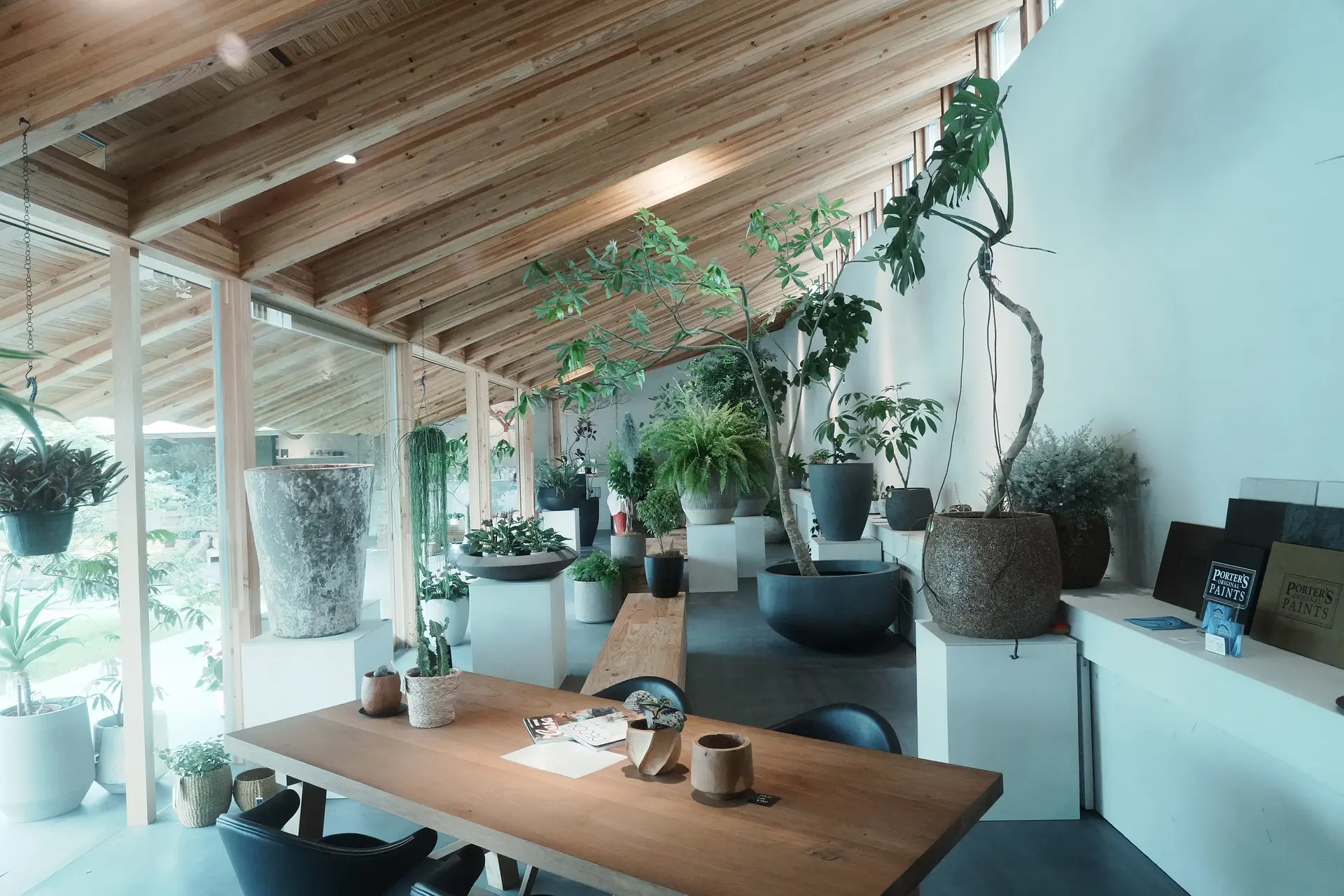 カフェも併設しており、たくさんの観葉植物に囲まれながらいただくコーヒーは最高です。