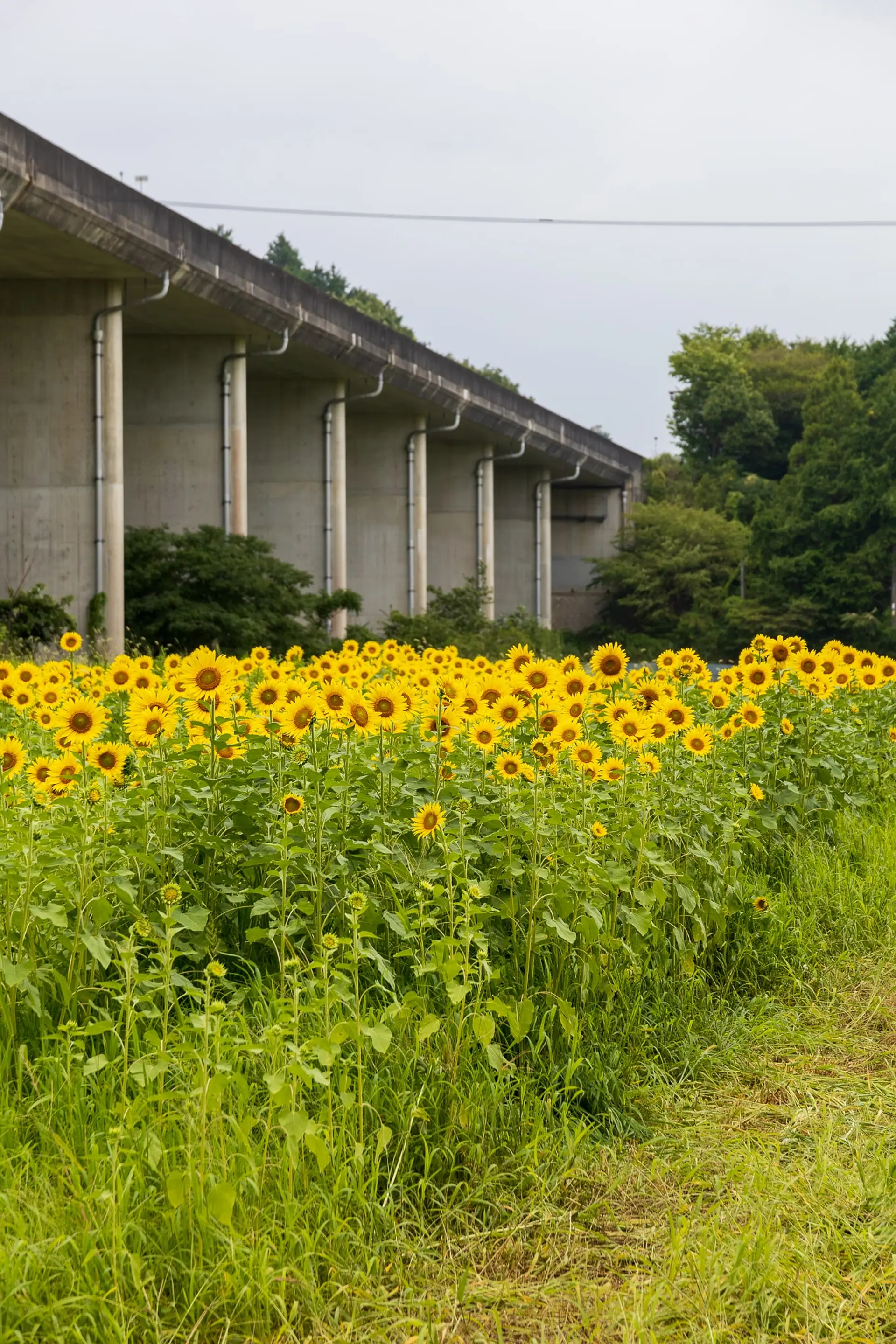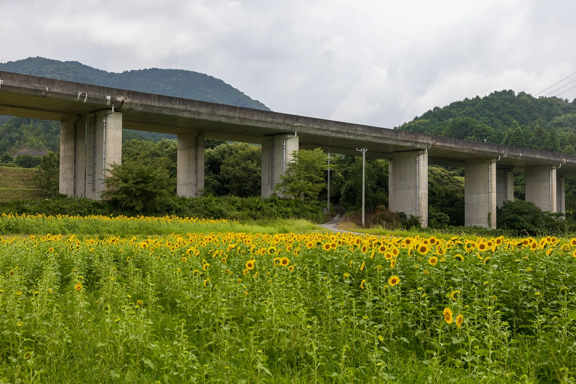 第2期のひまわり畑の場所はふるさと味工房アグリの奥、伊勢自動車道の高架下辺りになります。
