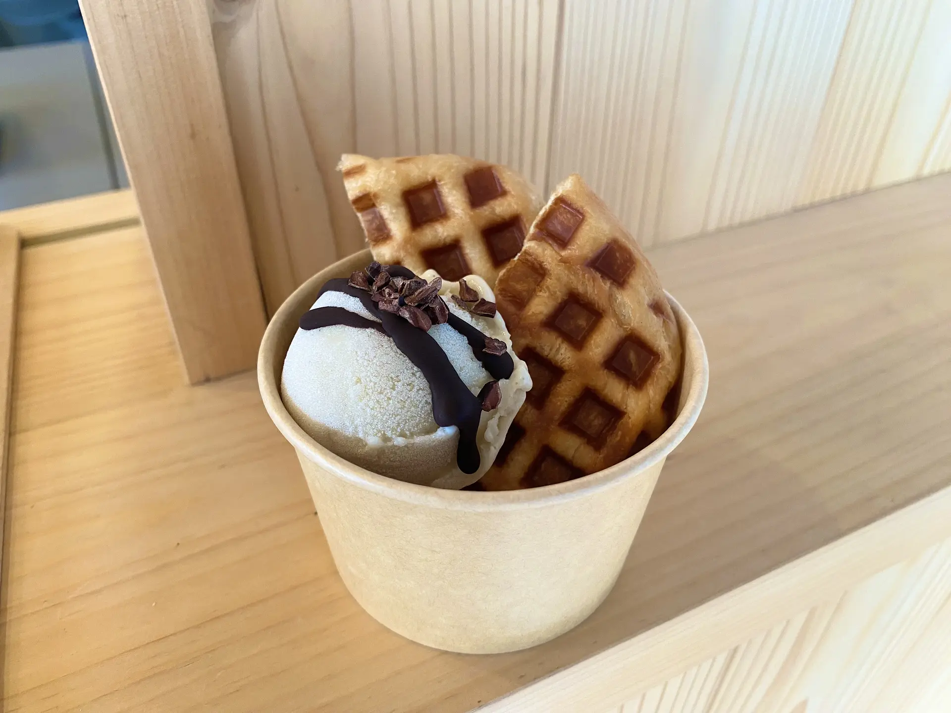 人気の卵乳不使用ドーナツの生地を使ったワッフルは外はサクッと他と一味違う美味しさです!