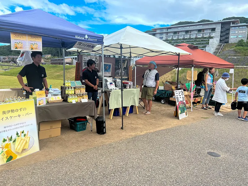 VISONの敷地内にて、三重県内の選りすぐりのお店が毎日日替わりで出店しています。地域の特産物やおしゃれなカフェ、アクセサリーや工芸品、ワークショップの体験イベントなど、さまざまなお店が登場します。