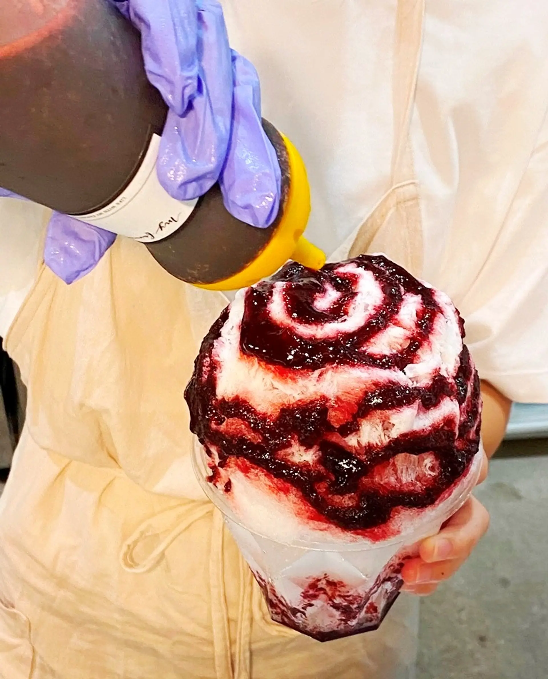かき氷はブルーベリーとマンゴーの2種類があり、「ARCH SHORENJI」さんで提供されていたメニューを販売しています。