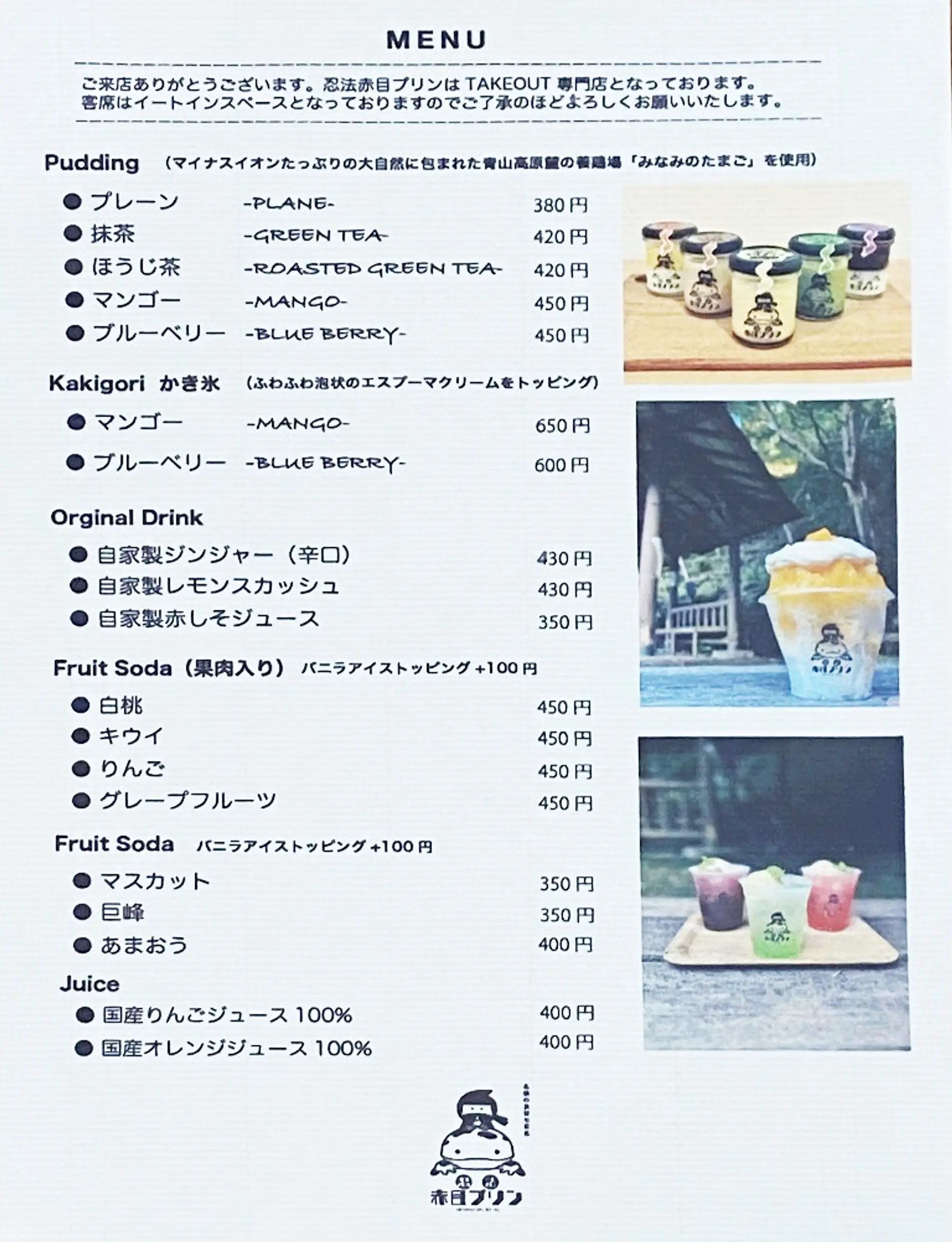 「忍法赤目プリン」は、ハイキングの疲れを癒すのにぴったりのお店です。