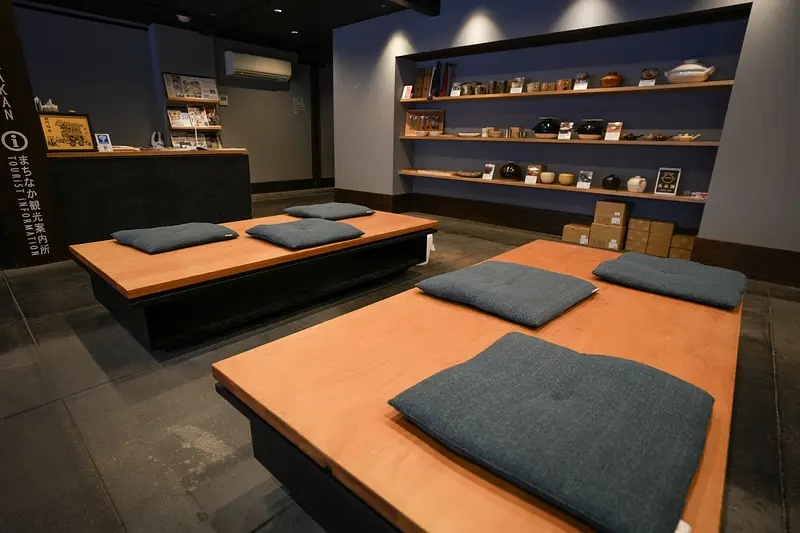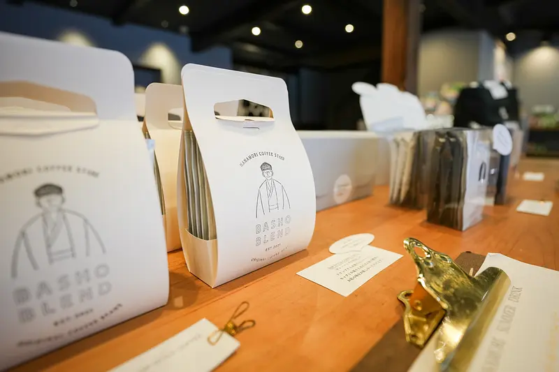 店内には飲食ができる休憩スペースがあります。お洒落な芭蕉モチーフグッズの販売もあるので要チェック!