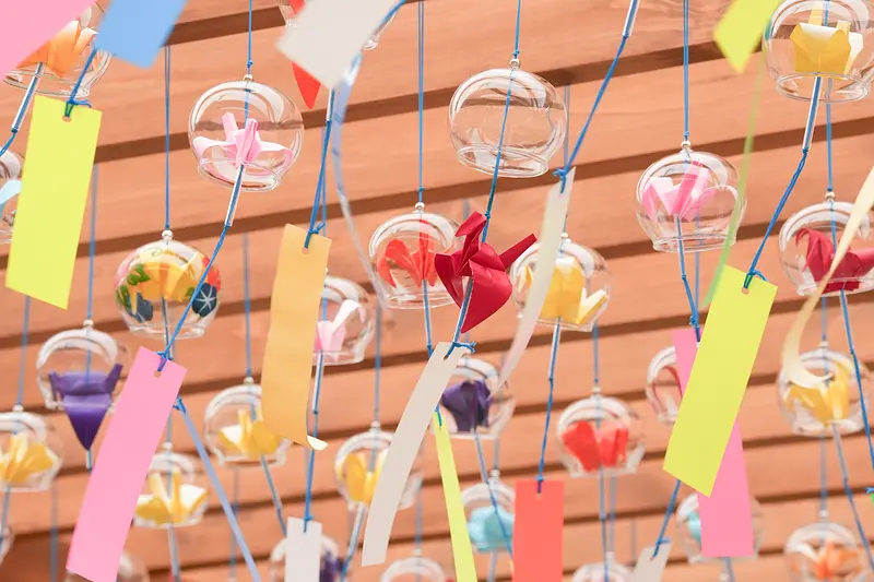 1700個の風鈴が圧巻!クリアな折り鶴、カラフルな短冊が付いているものや、様々な柄の風鈴が飾られており、風が吹くと心地良い音のハーモニーが楽しめます♪