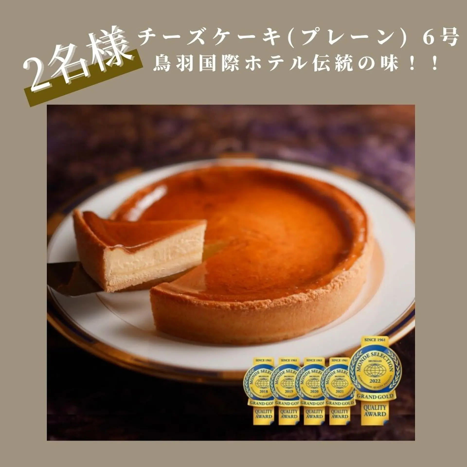 二年連続モンドセレクション最高金賞受賞!50年以上、変わらぬ製法を守り続ける「鳥羽国際ホテル チーズケーキ」。しっとりとした舌触りとまろやかなベイクドタイプのチーズケーキは、一度は食べたい人気の品です。