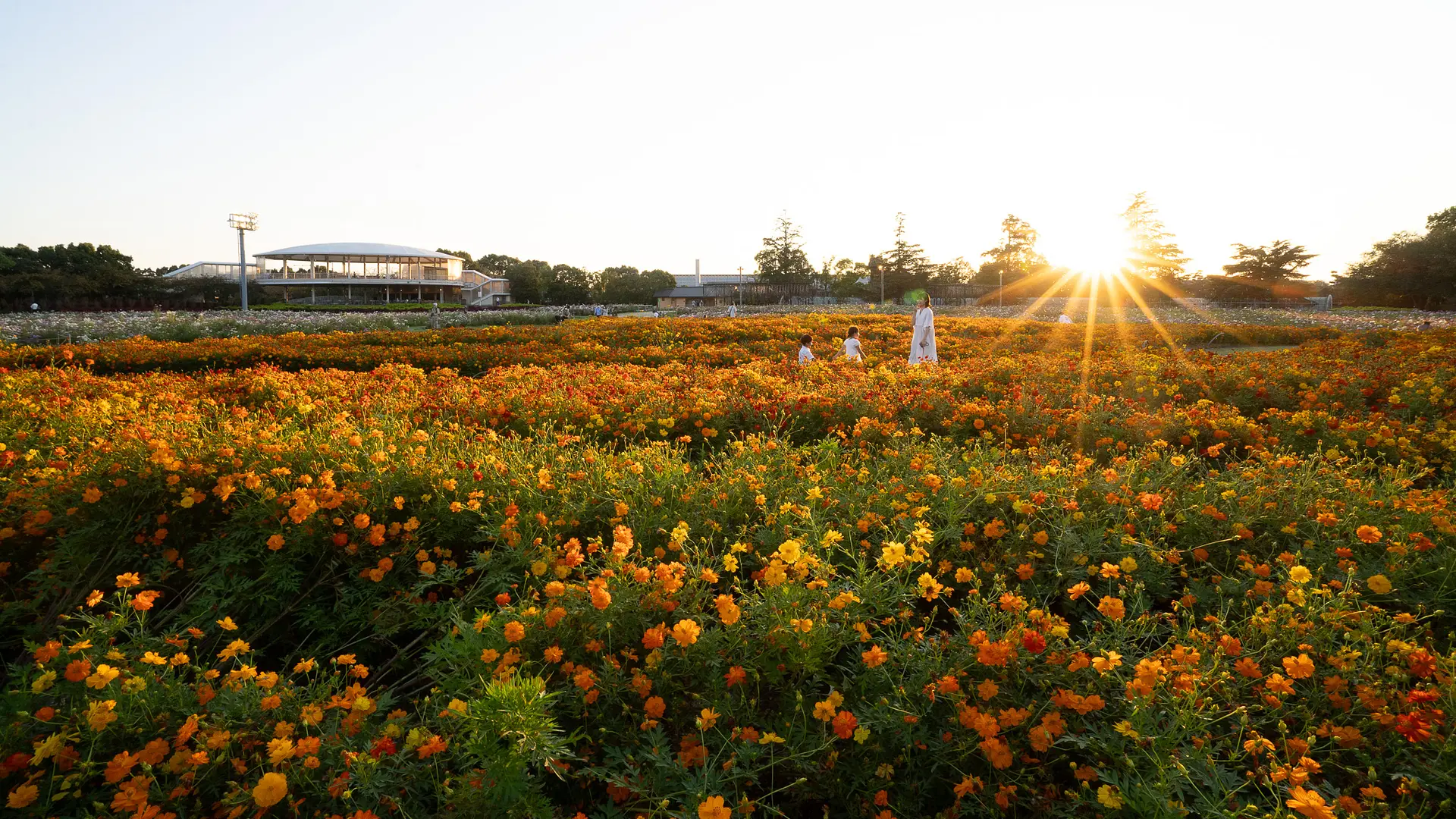 なばなの里の広大な花ひろばを埋め尽くすコスモス!