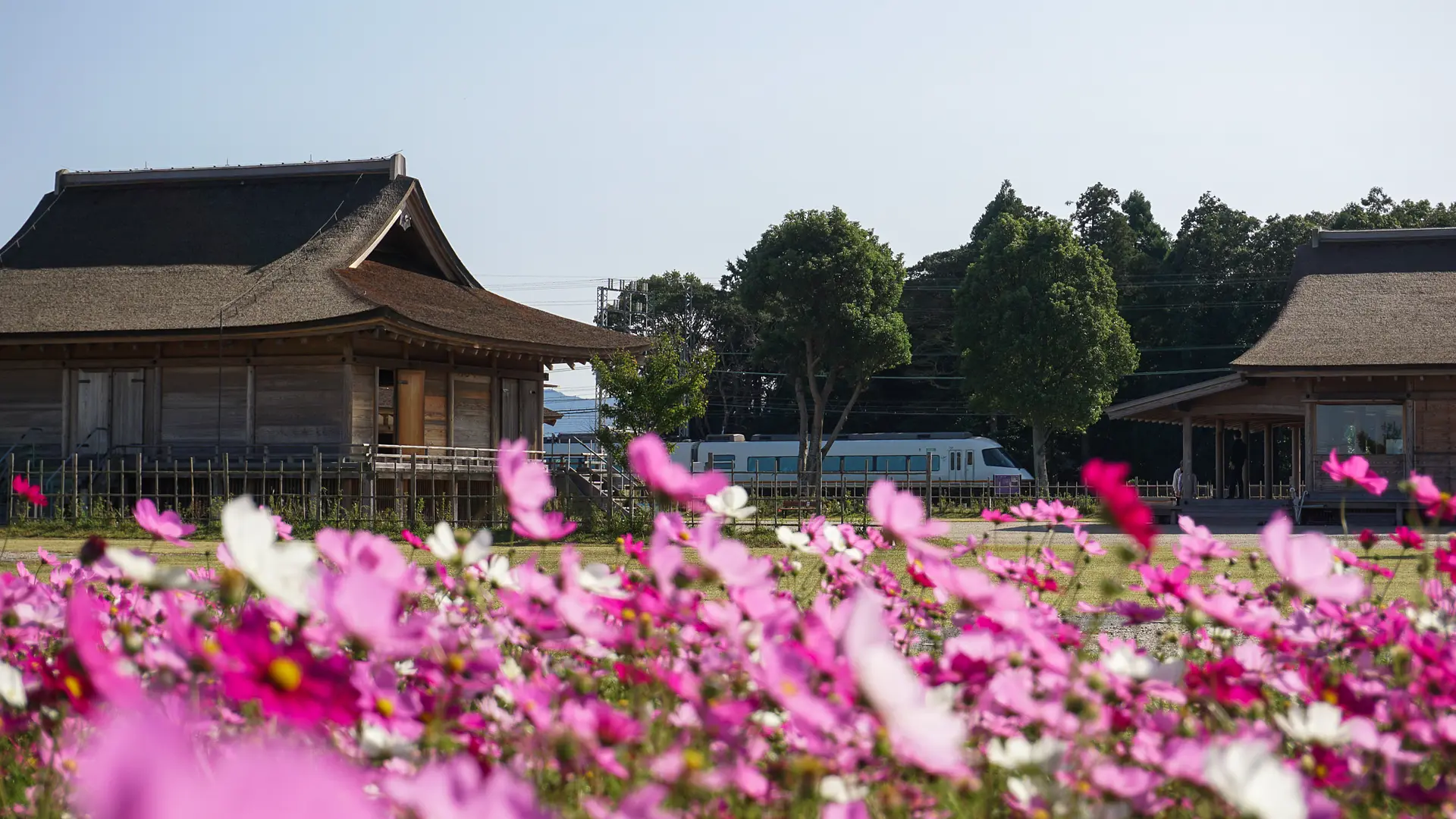 コスモス・史跡・列車を一緒に楽しむことができるおすすめスポットです!