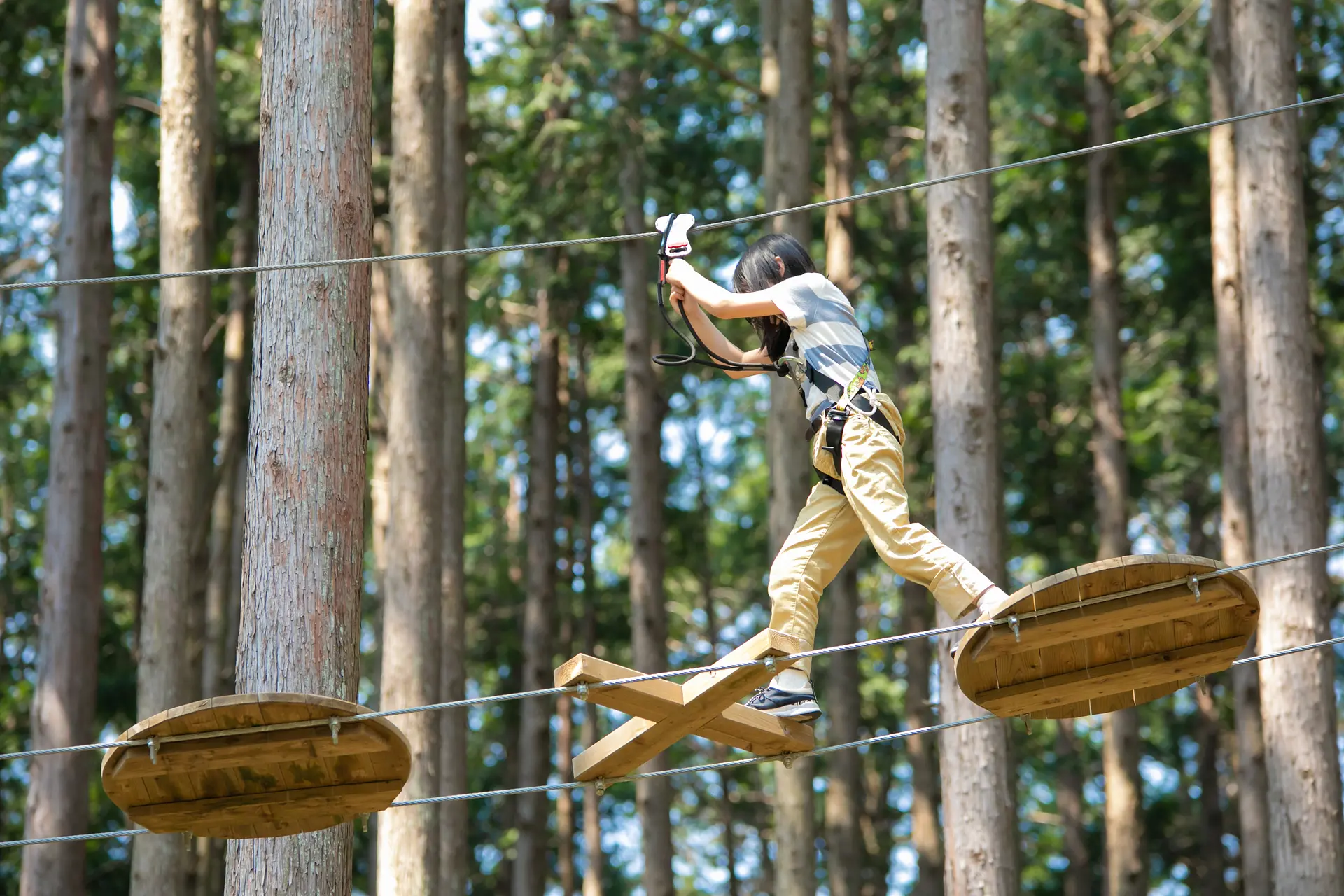 子供や高さが苦手な方でも挑戦できる「ジップトリップコース」から、森の特徴を活かしたダイナミックでスリリングな体験ができる「アドベンチャーコース」まで、大人も子供も思い切り楽しめるアクティビティが盛りだくさん♪