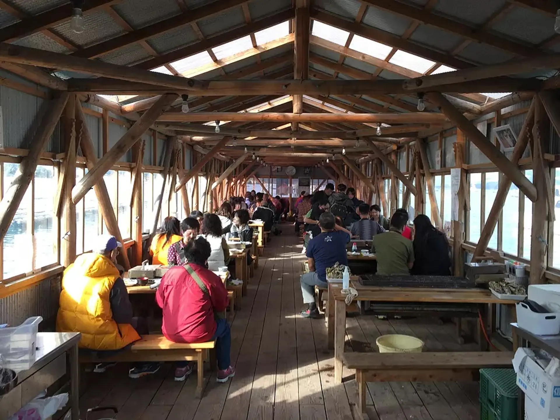 地元浦村牡蠣の養殖場、モンキー水産直営の牡蠣食べ放題です。