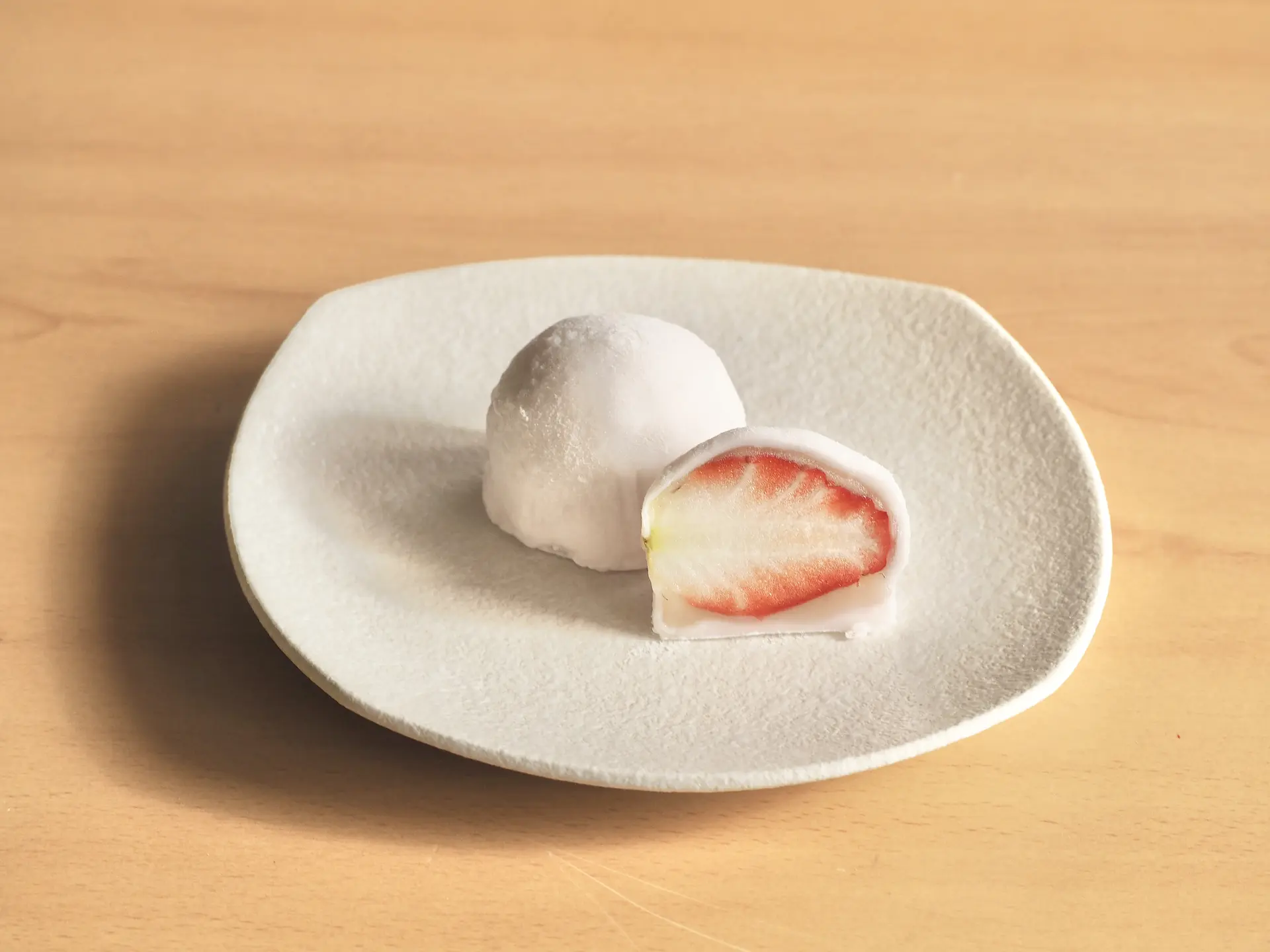 冬から春にかけては、いちご大福が人気です。写真をスライドすると、ほかの季節の和菓子が見られます。