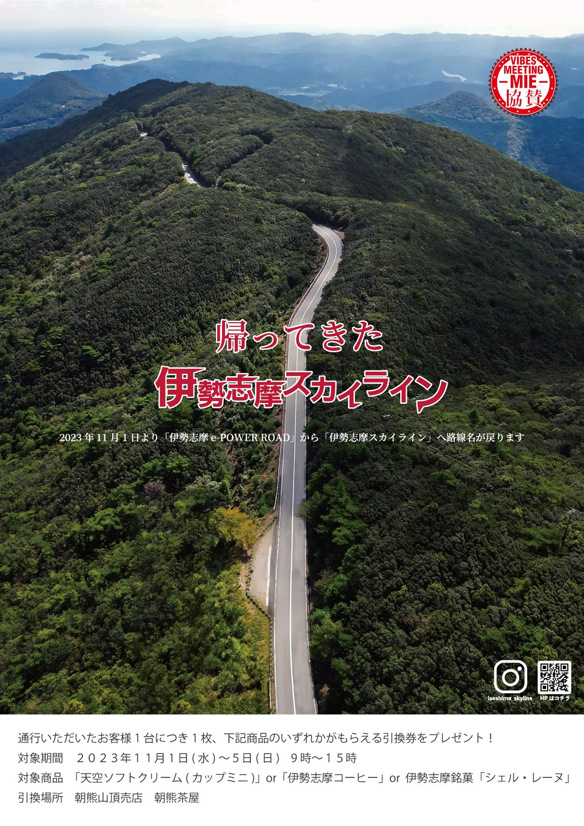 名称変更とあわせて、「帰ってきた『伊勢志摩スカイライン』キャンペーン」やオリジナルステッカーの販売もありますよ♪