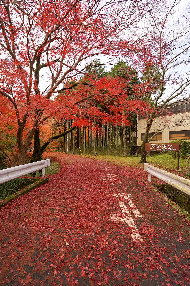 その後、更に紅葉が進むと全体が赤く染まり、風でヒラヒラと舞う紅葉を楽しむことや、真っ赤な落ち葉の絨毯を楽しむことができるので、紅葉の始まりから終わり頃まで たくさんの魅力を味わうことができます♪