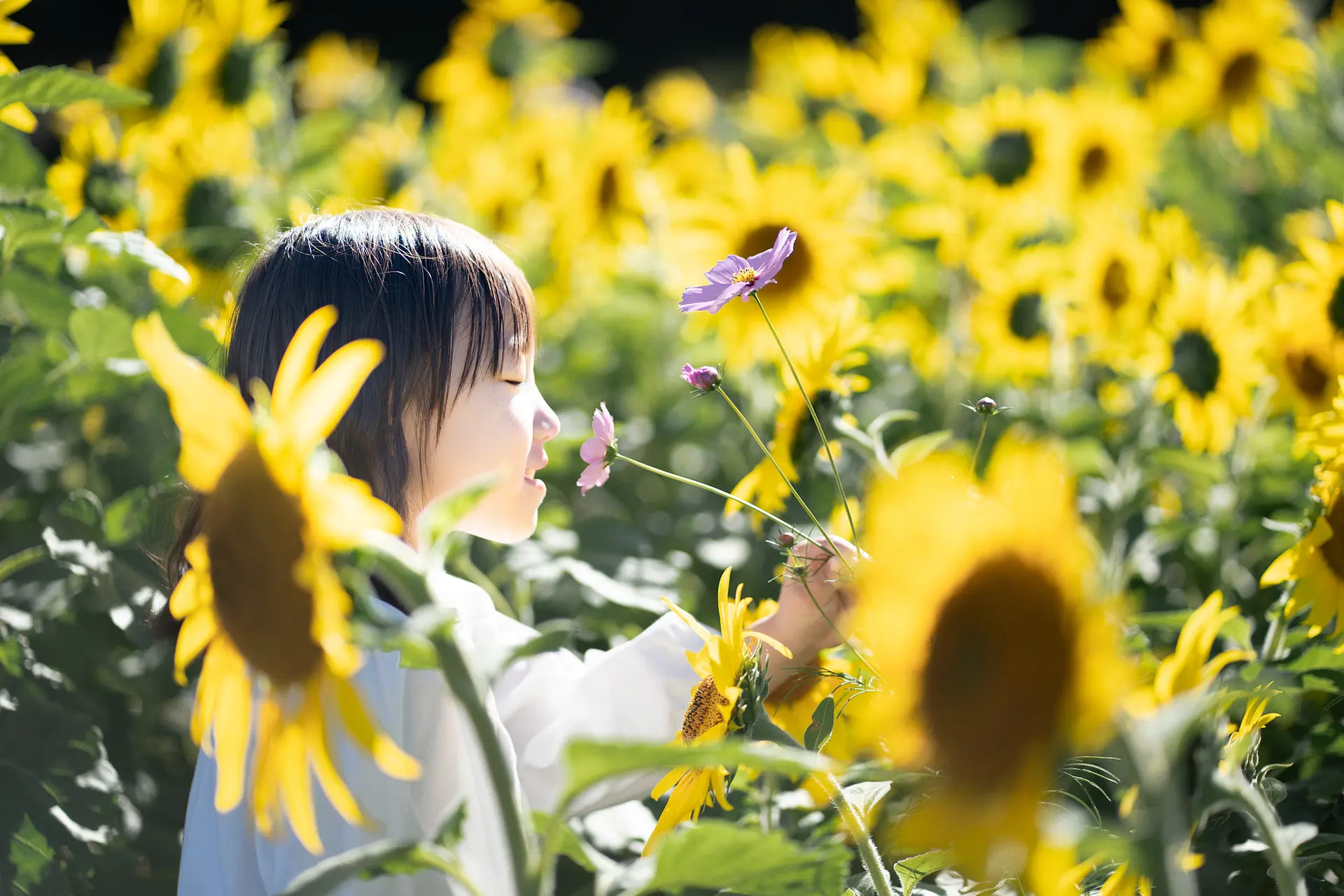 今年はコスモスの奥に咲くヒマワリも一緒に楽しめます!