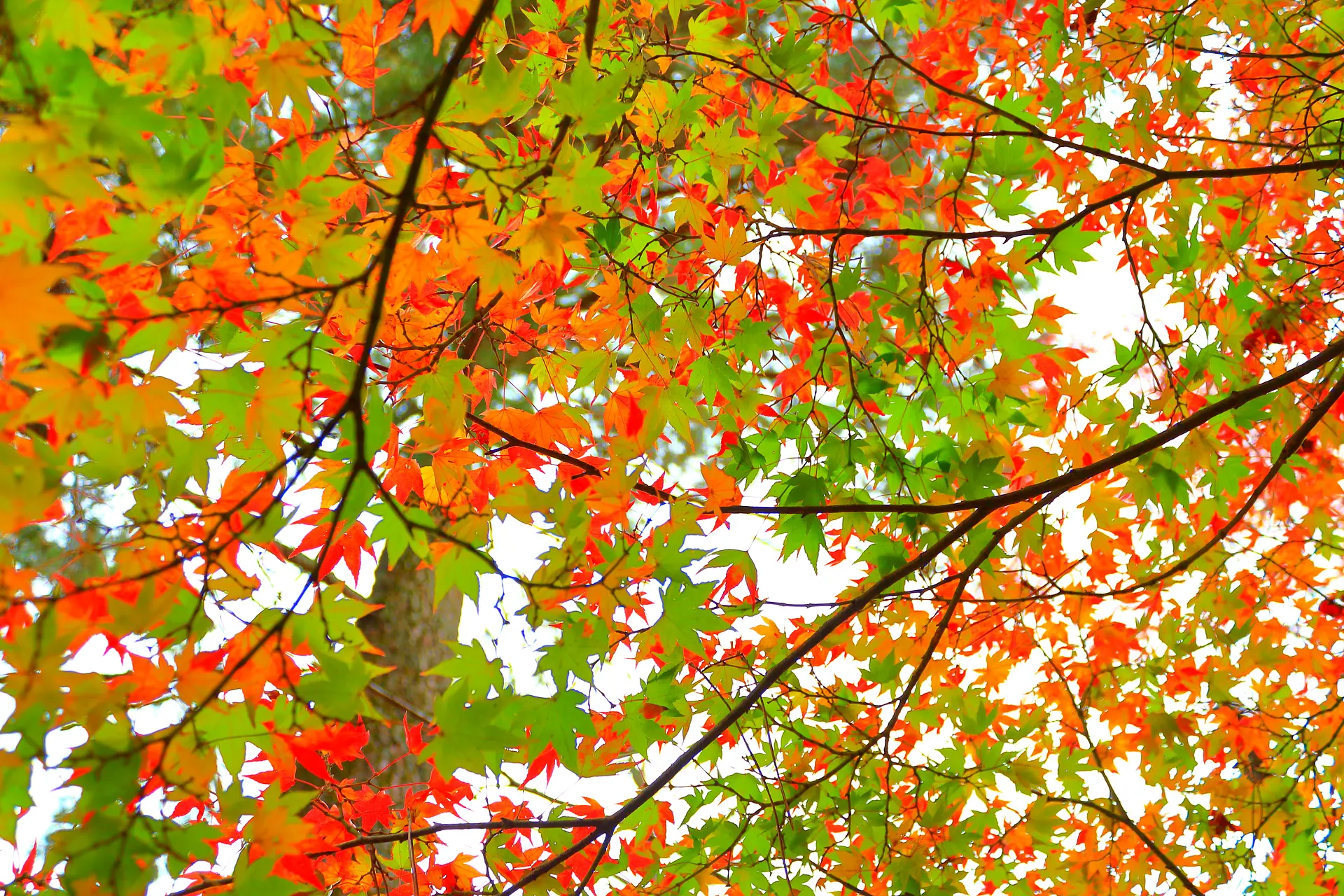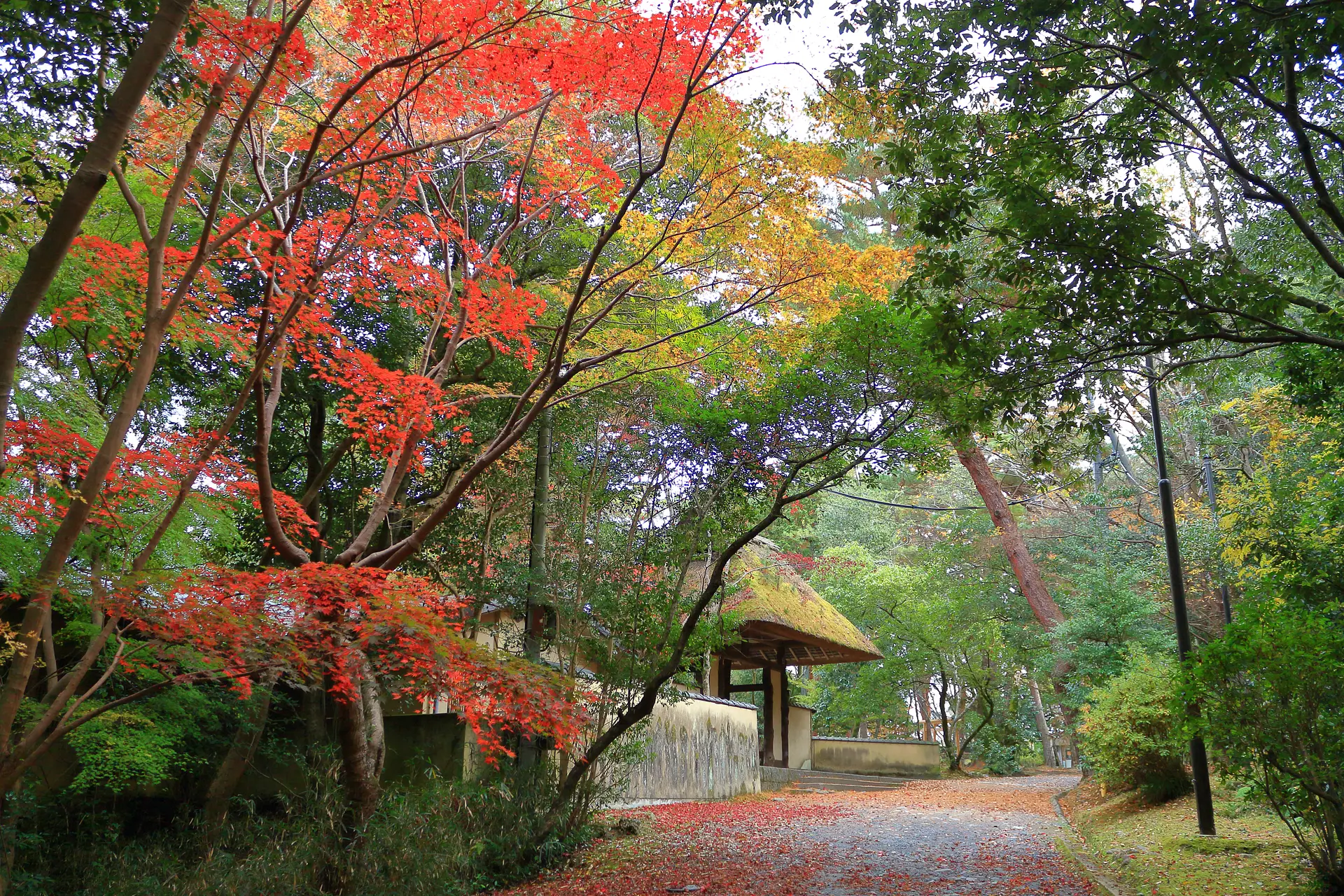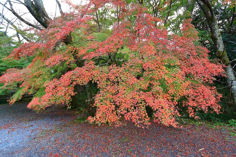 こちら⇧は、紅葉とイチョウの落葉のコラボレーション。草や苔などの緑色もあると、赤・黄・緑の三色になります。