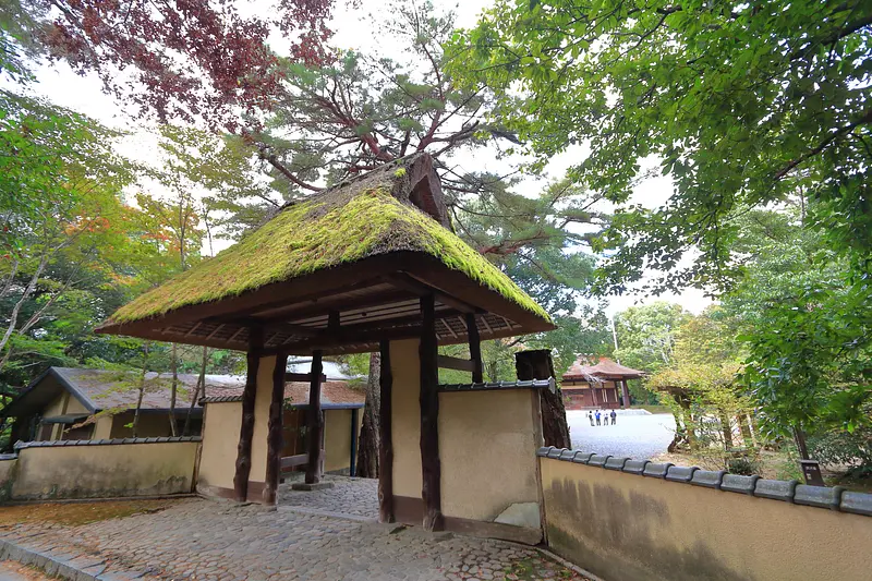 俳聖殿の前にある茅葺の門(案内ボランティアの方に聞くと『俳聖殿 附 厨子 棟札門』とのことでした)はとても趣きがあり、紅葉との景観もとても良くて、筆者はお気に入りのスポットです。