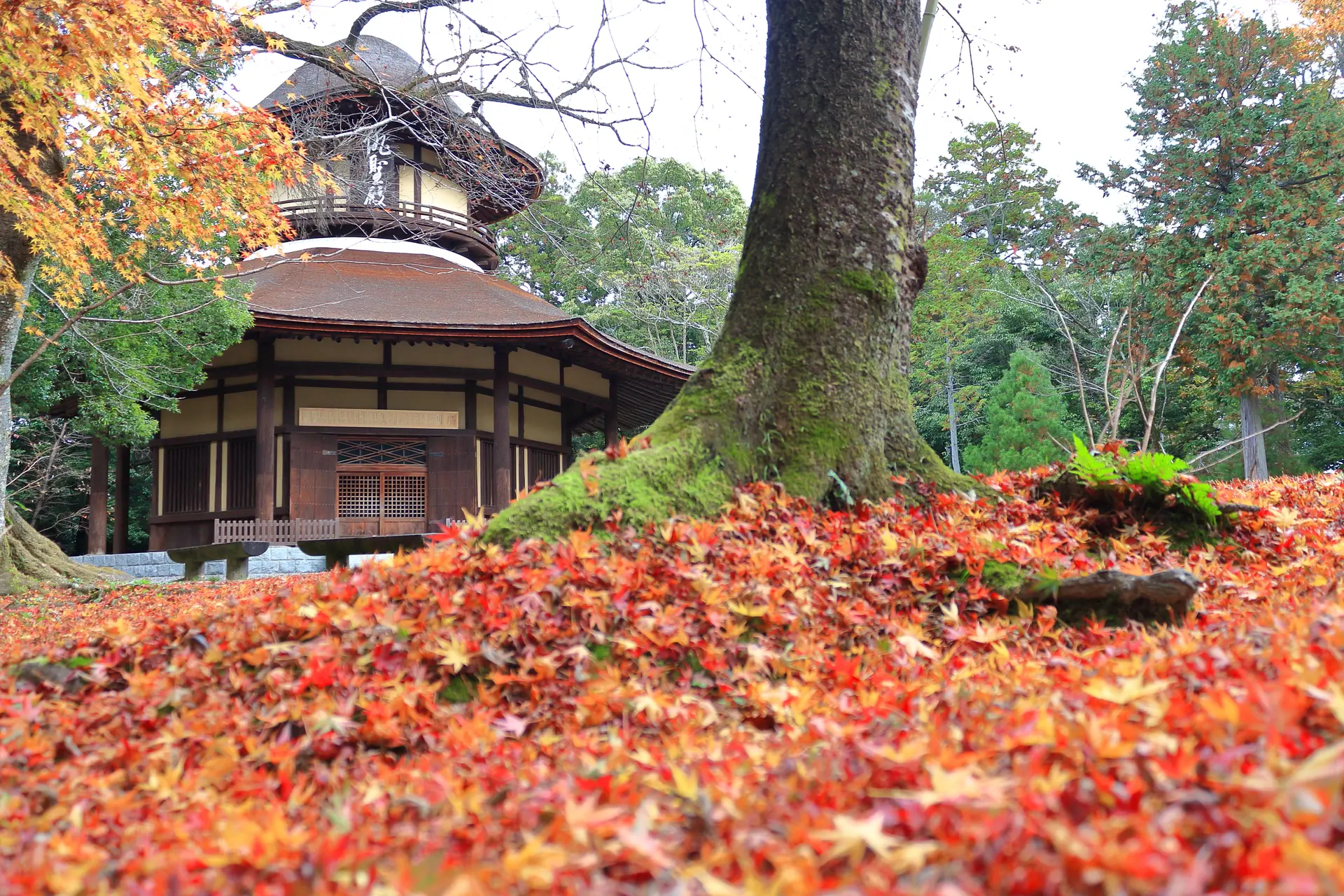 紅葉が散った後も、ローアングルで俳聖殿を観ると落葉とのコラボレーションもとてもいい感じです!