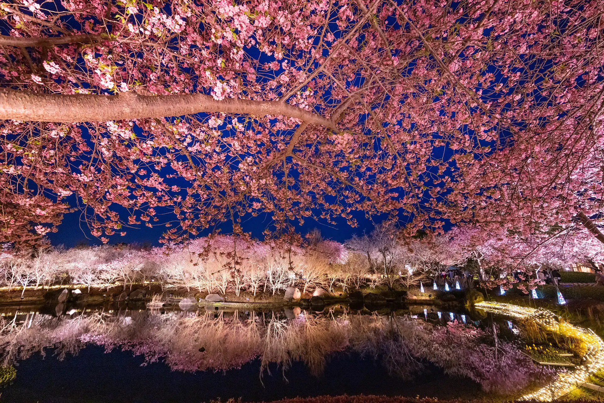 今なら河津桜とイルミネーションの両方をお楽しみいただけるので、一足早い春の訪れと光の絶景をぜひご覧ください。