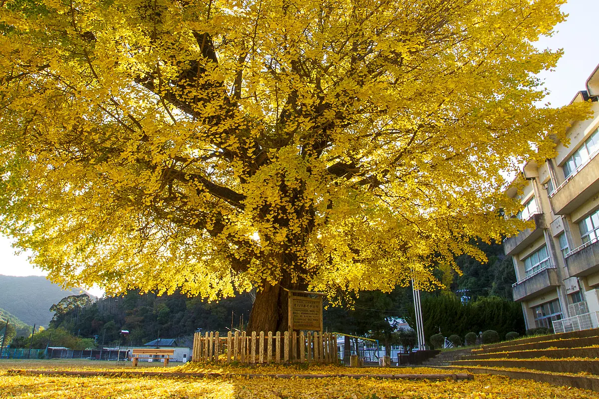 南伊勢町の旧穂原小学校の校庭には、樹齢300年を超える巨大な大銀杏があります。