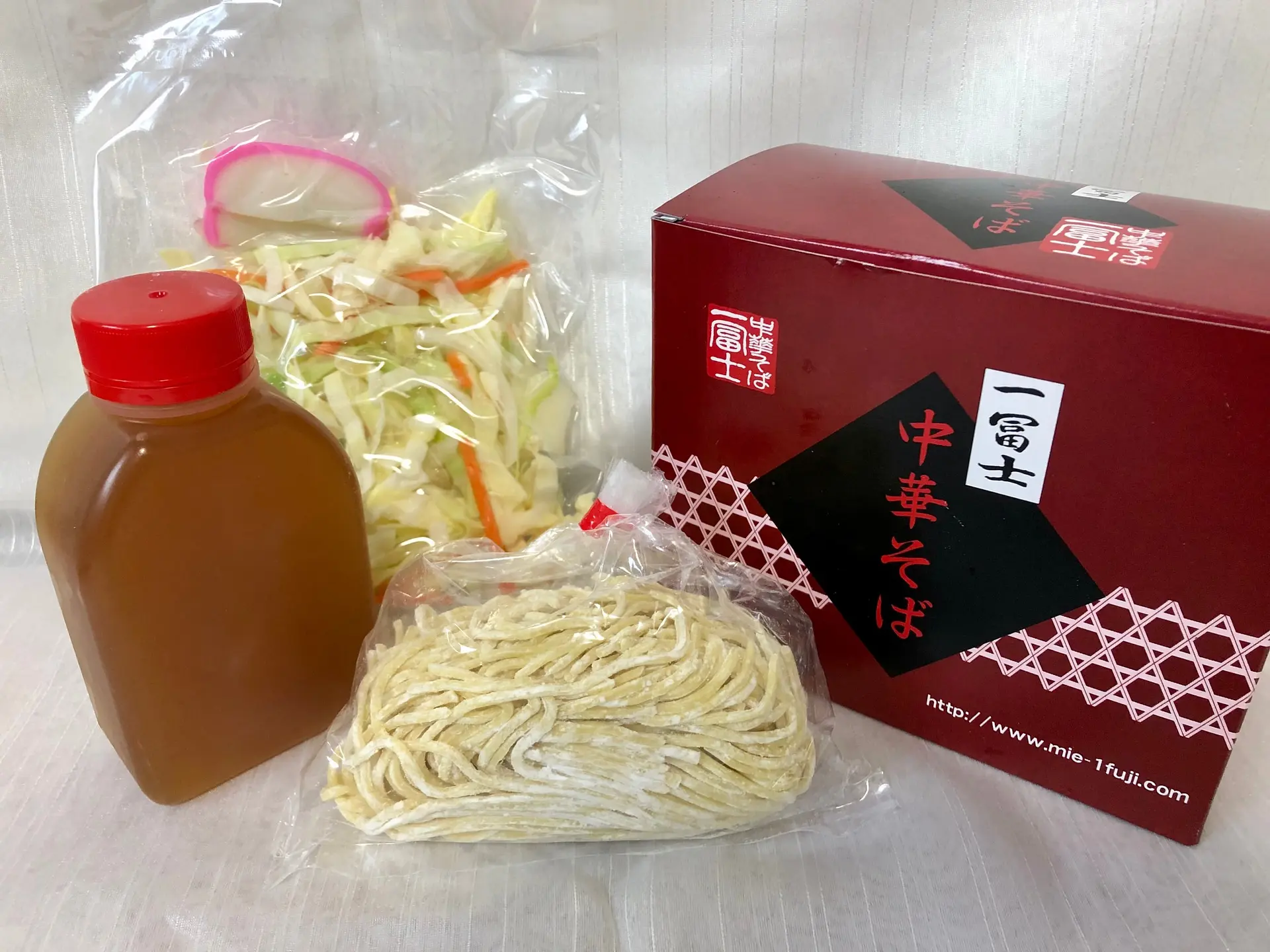 特製スープ・生麺・生野菜・かまぼこ・調味油が一箱一人前のセットで入っています。