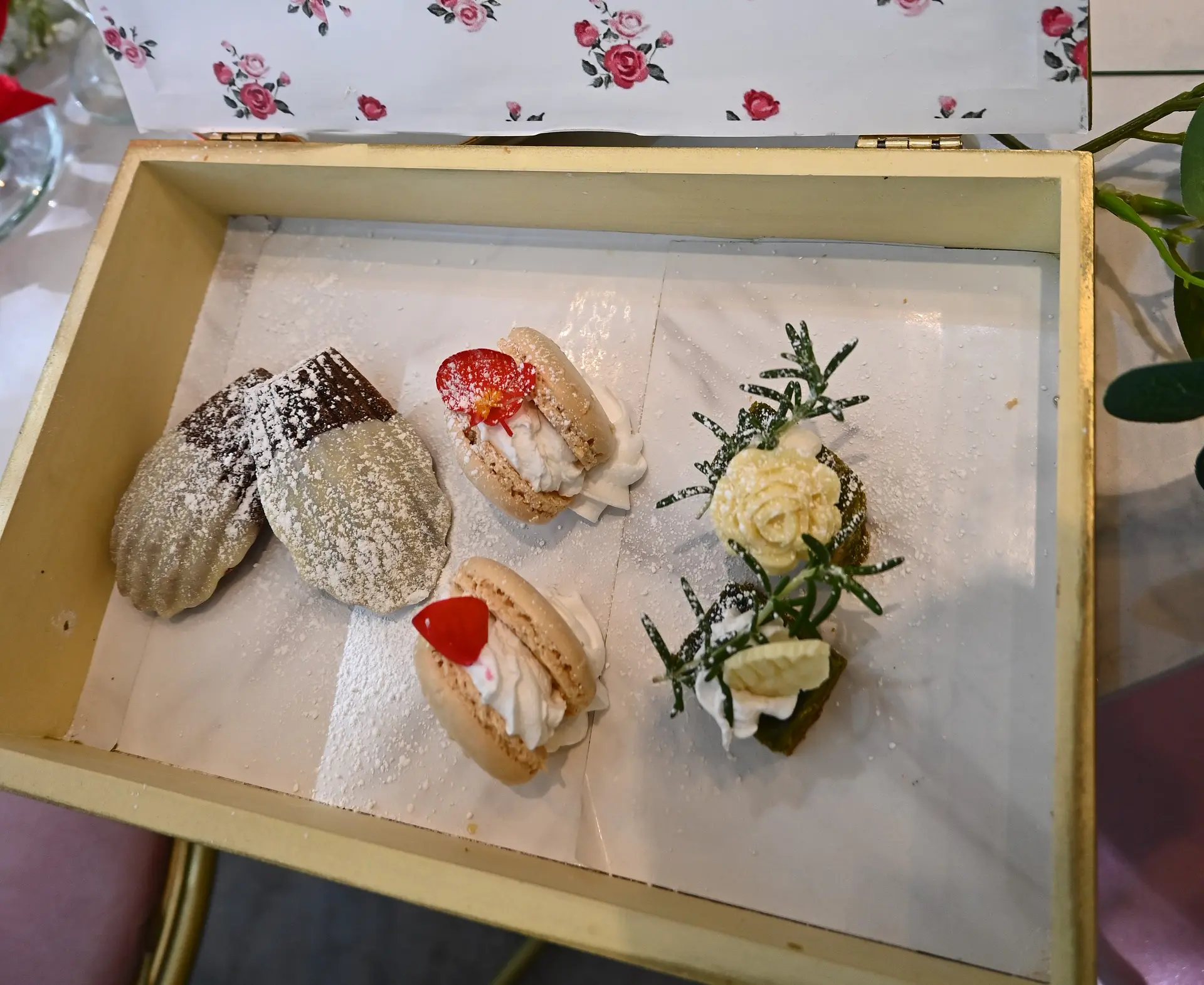 チョコレートフィナンシェ、キャラメルマカロン、お抹茶ブラウニーが並びます。