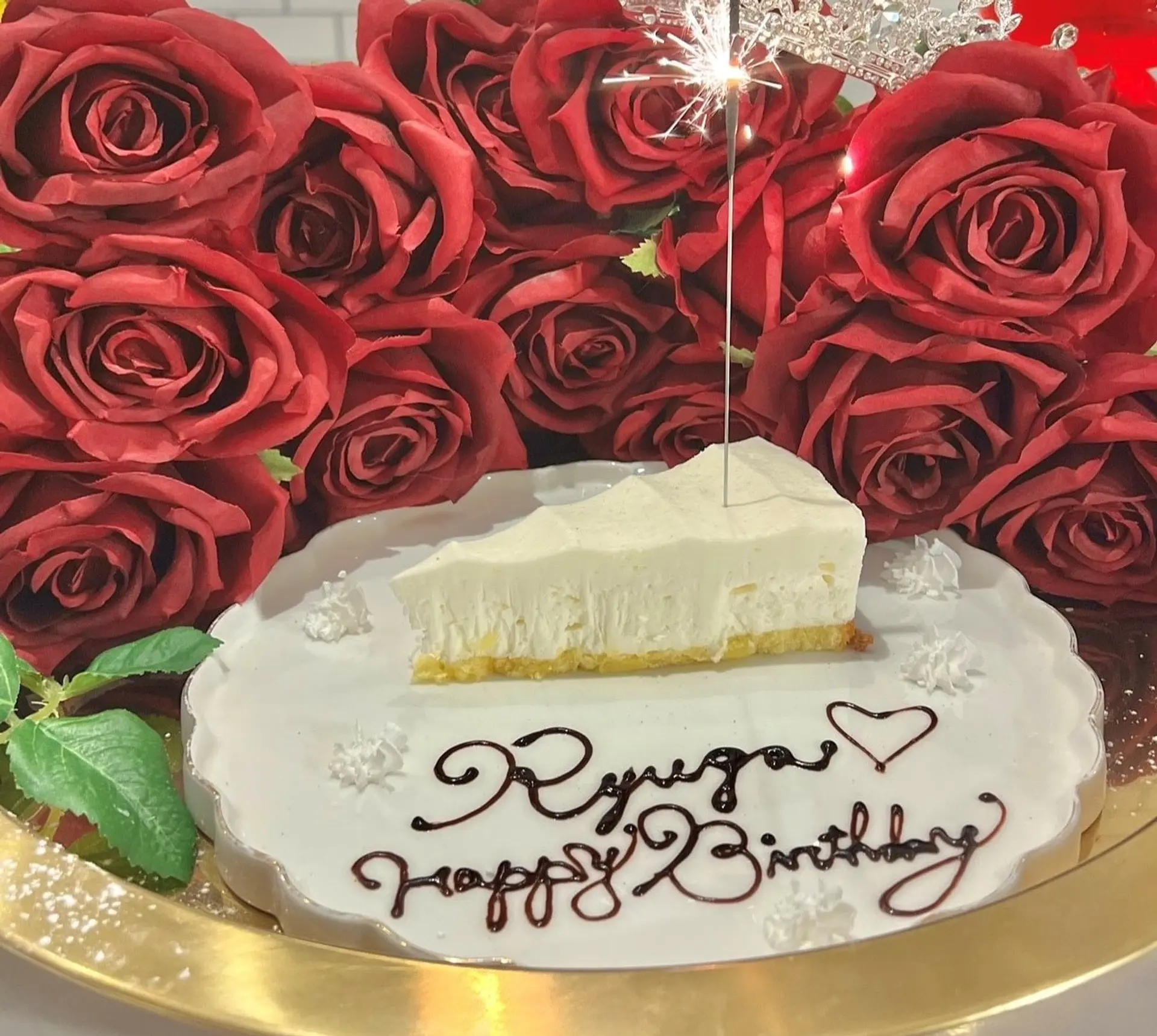 バースデープレートに添えられているバラの色を推しのカラーに変えられます。事前に予約して推しのアクスタと一緒に写真を撮る人も多いそうです。