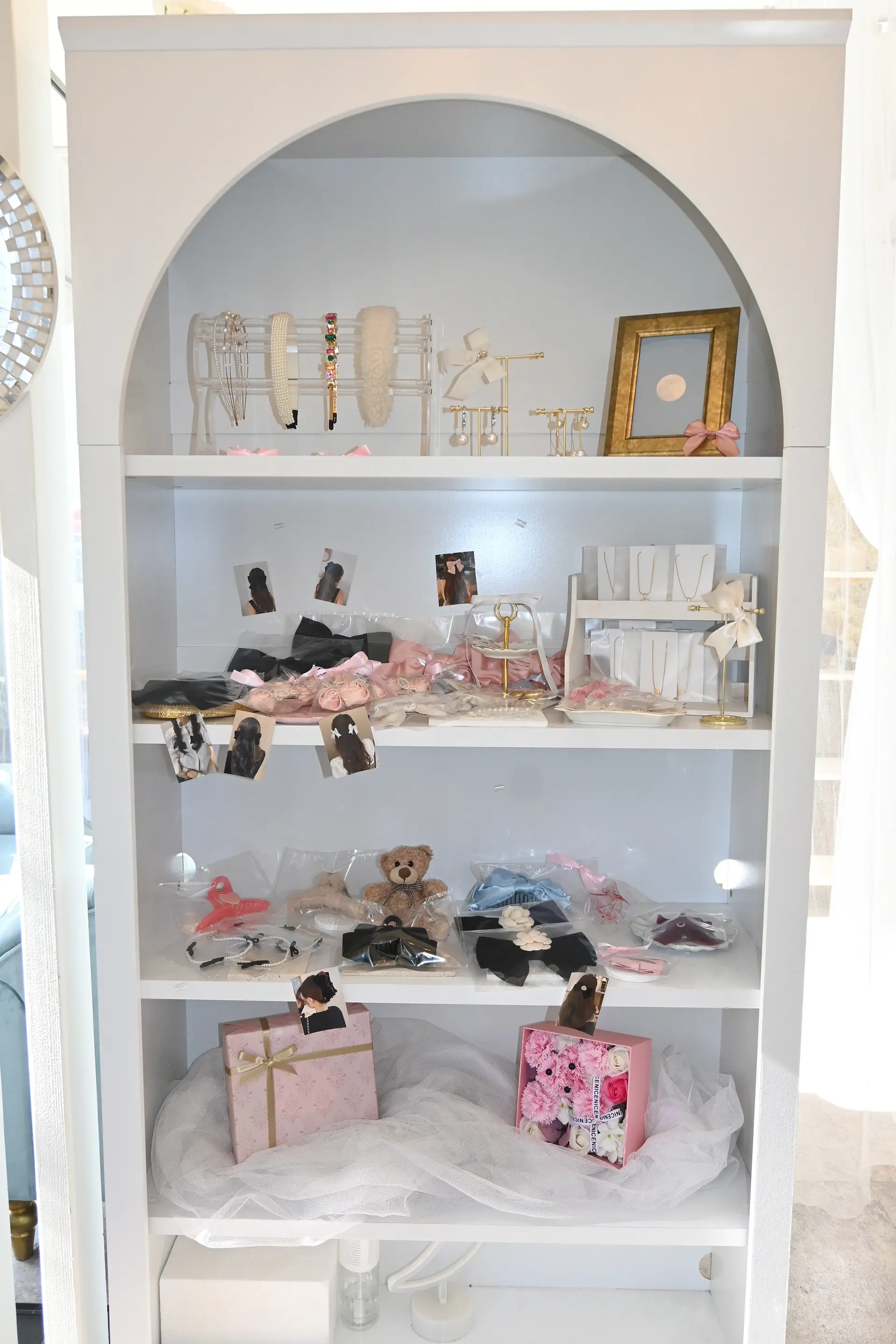 エントランス横にはアクセサリーや雑貨も並びます。お店に入った瞬間から夢の世界が広がります。