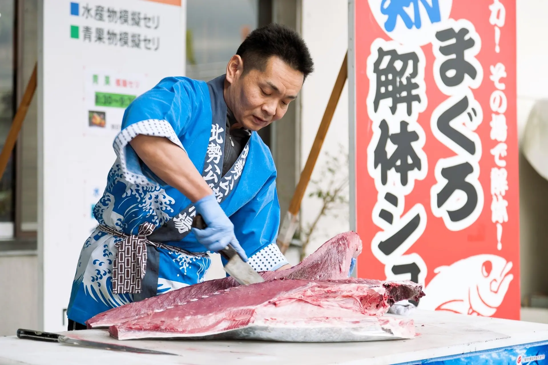 9:30~ 〔2〕まぐろ解体ショー(青果ブース横)