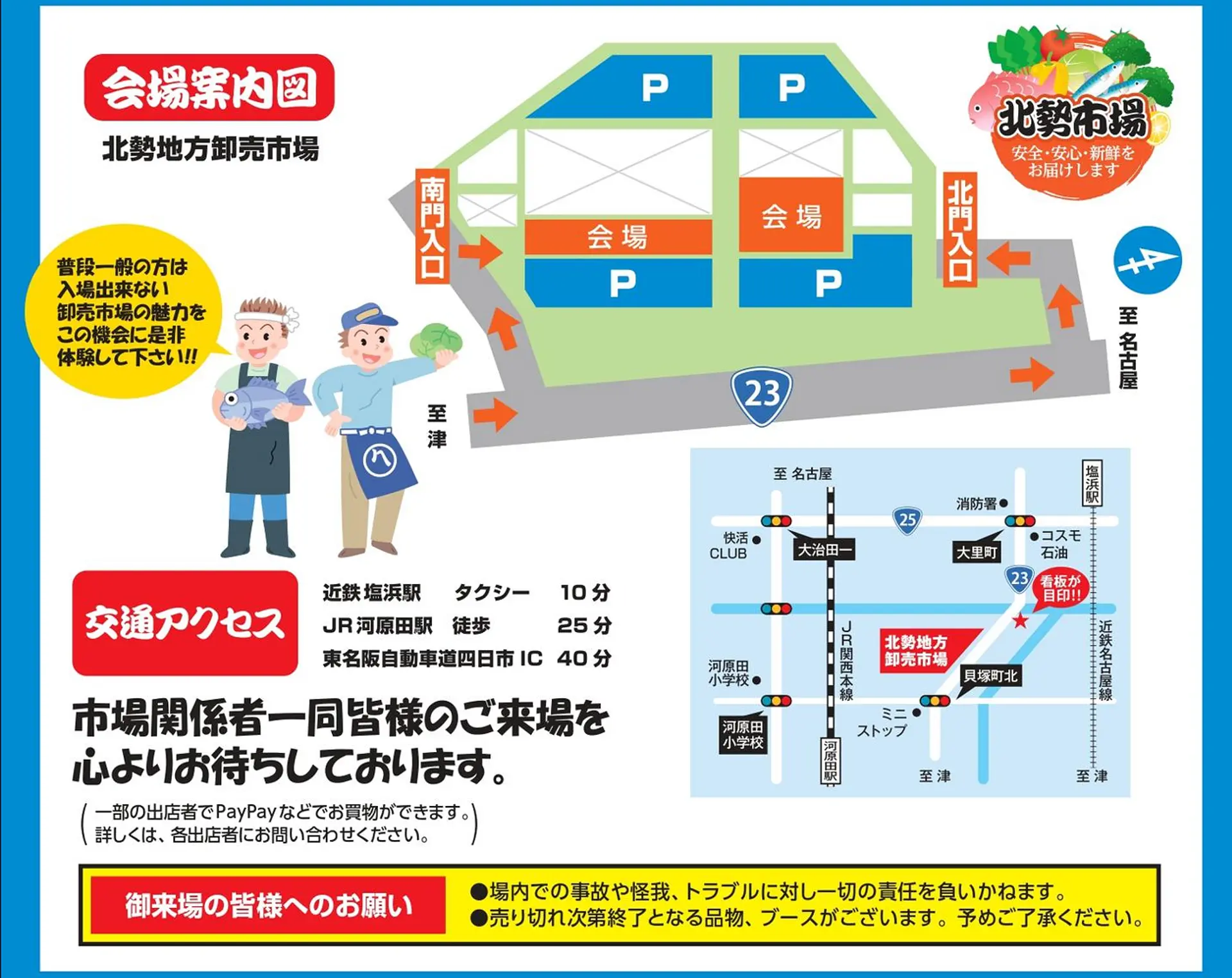 卸売市場らしい元気いっぱいで笑顔溢れるイベントですよ!