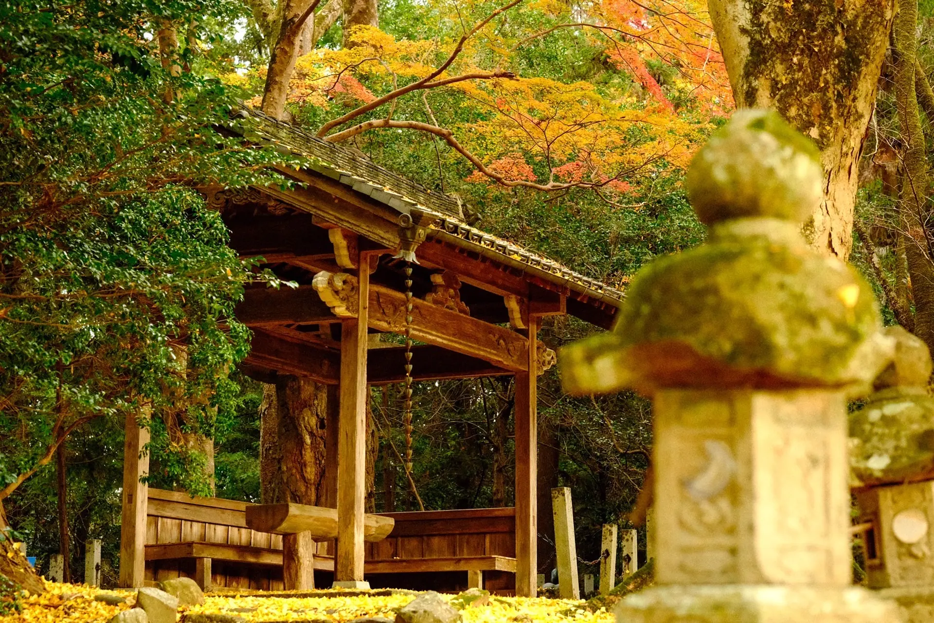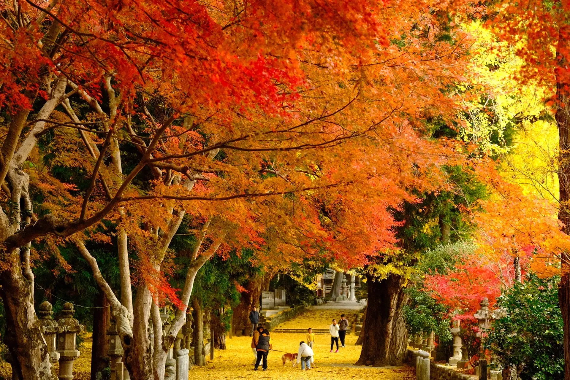 名張市にある「積田神社」(せきたじんじゃ)の大イチョウと紅葉の参道は、例年11月下旬から12月上旬に、紅葉の見頃を迎え、ステキな風景が広がります。