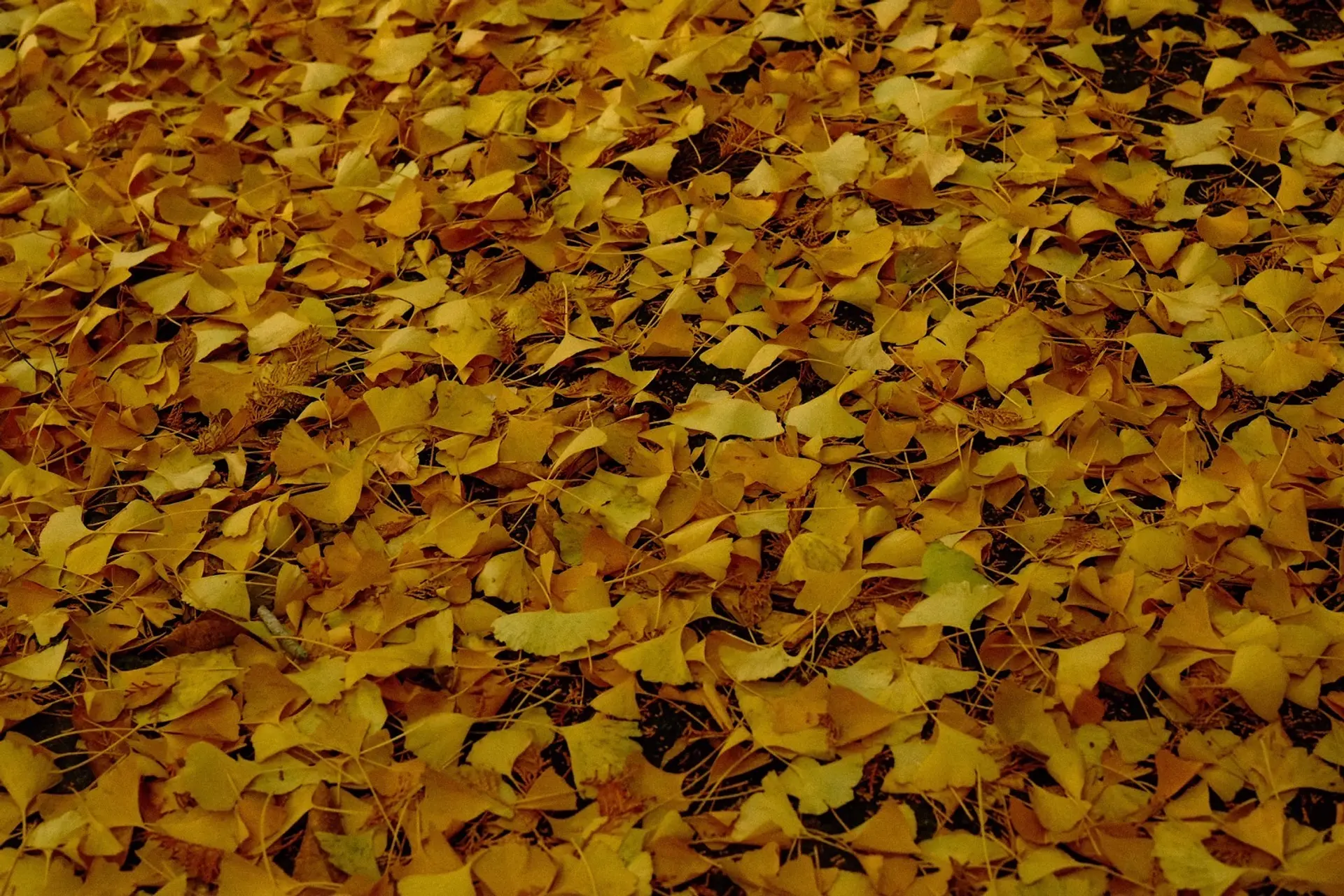黄金色に輝くイチョウのじゅうたんと真っ赤な紅葉のコントラストが美しい!