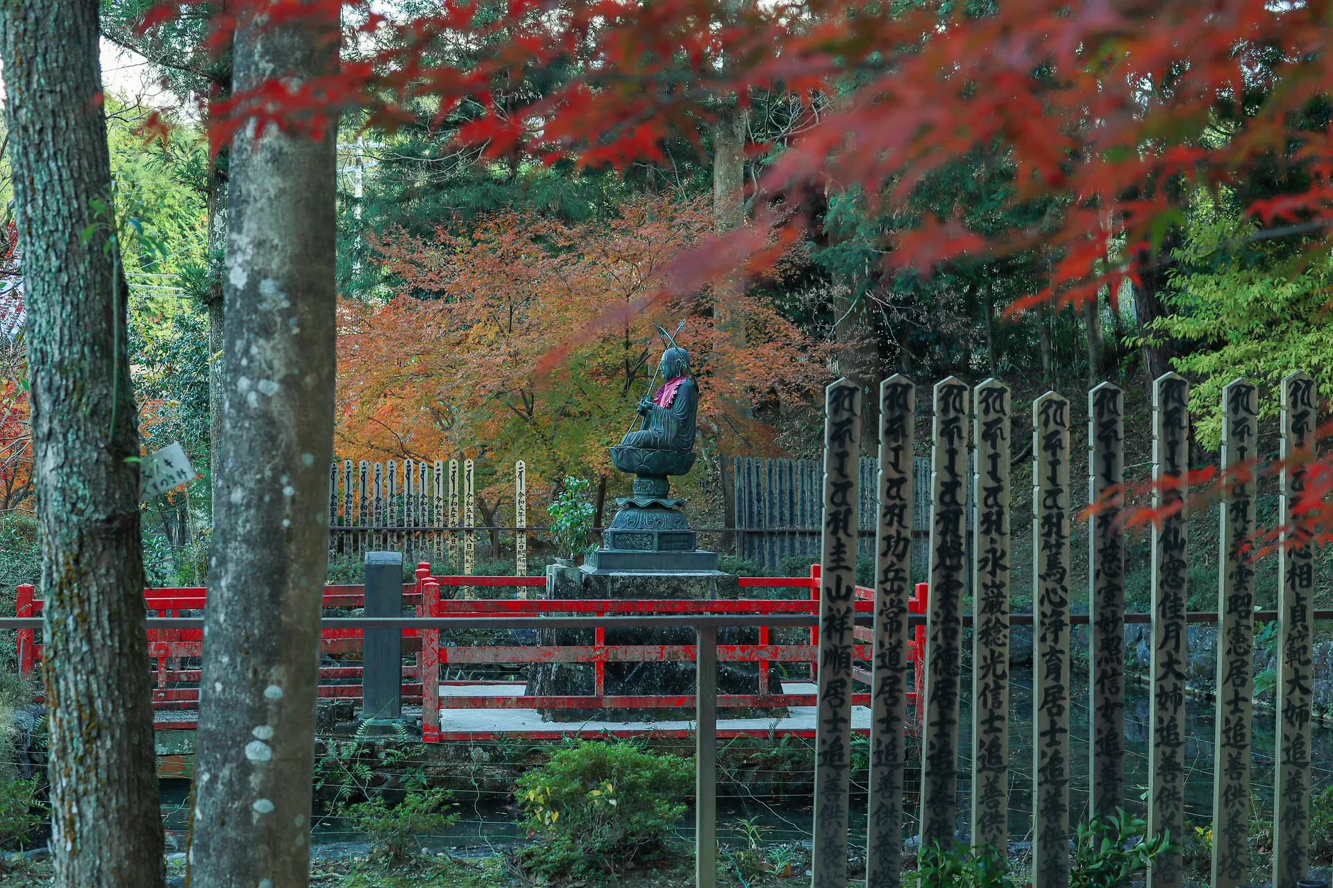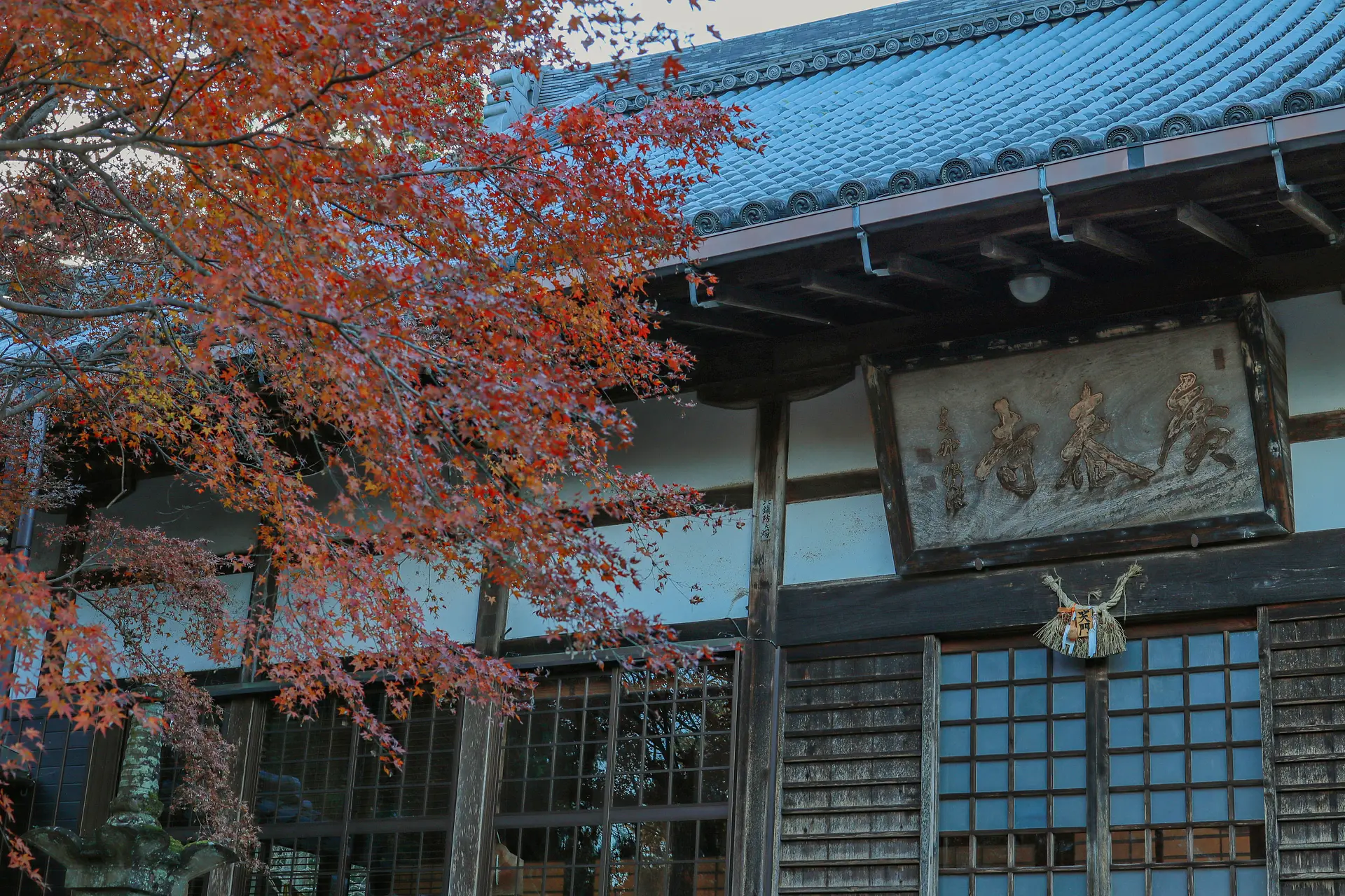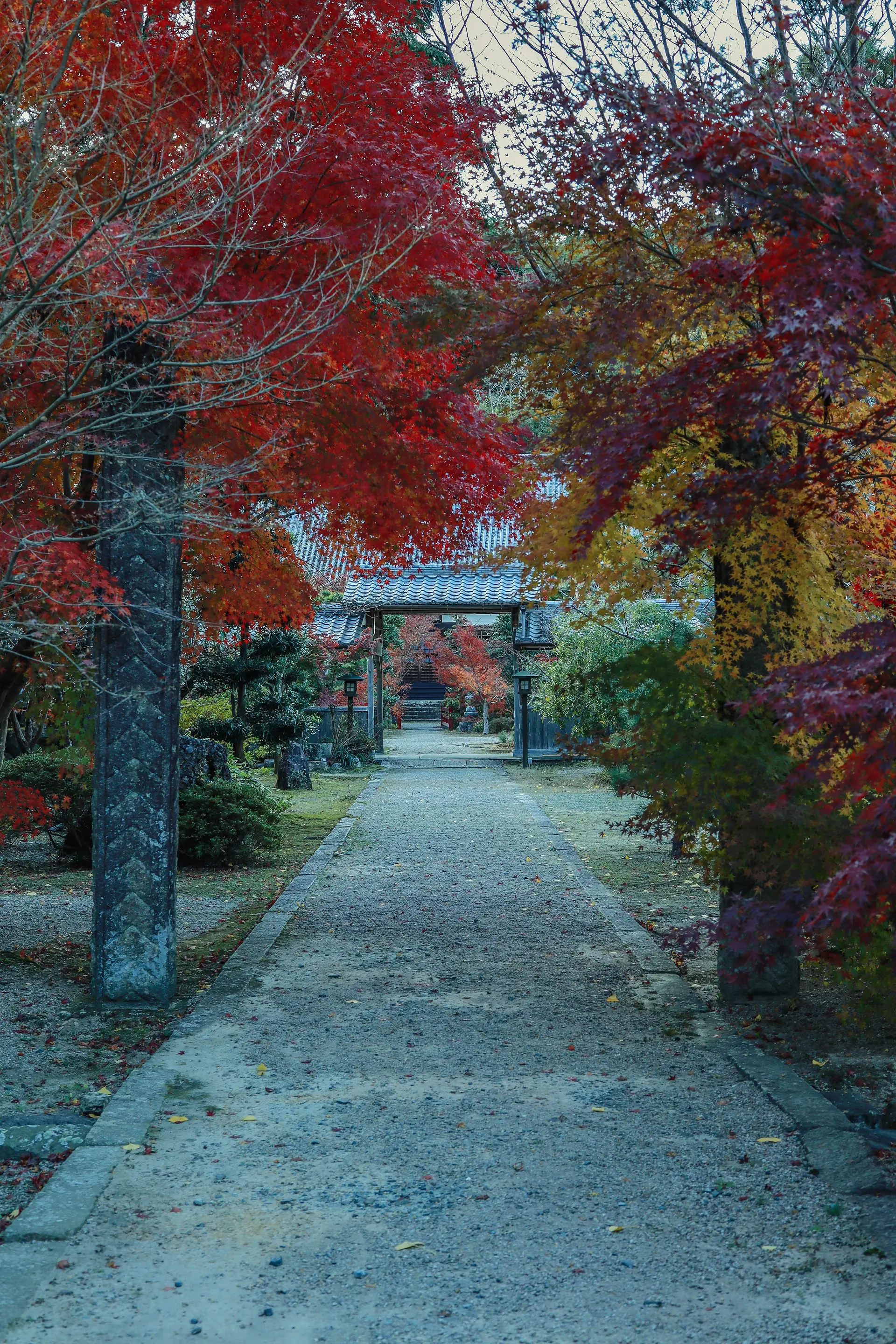 「広泰寺」には町指定文化財の山門があり、奥には赤く色づいた木々が見えます。山門が額縁のようになって風景を切り取っています。境内に入る前からわくわくしますね。