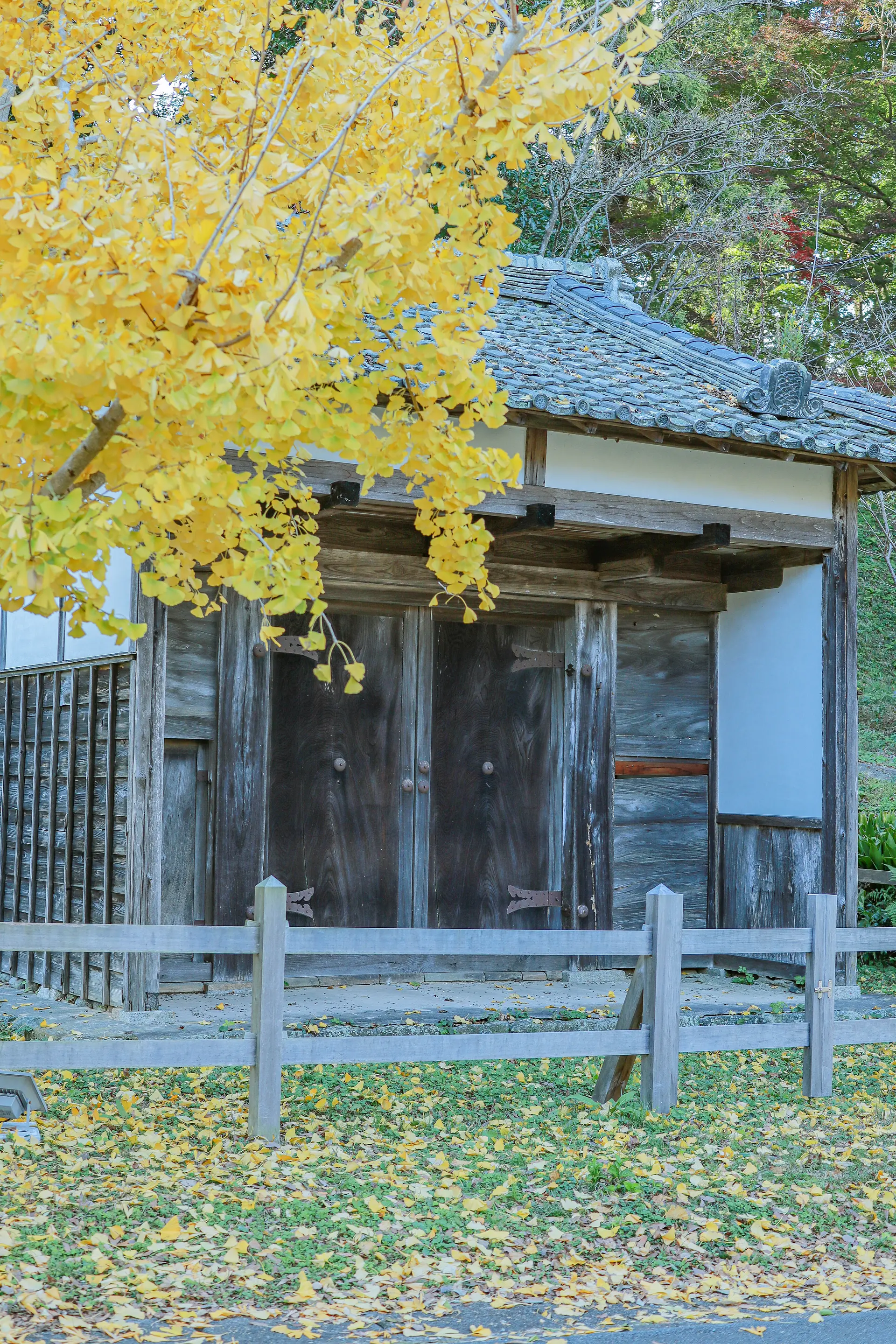 江戸時代中期に建てられたという「富士見門」は、現在でも当時の原型をとどめており、イチョウとともに観賞することができます。