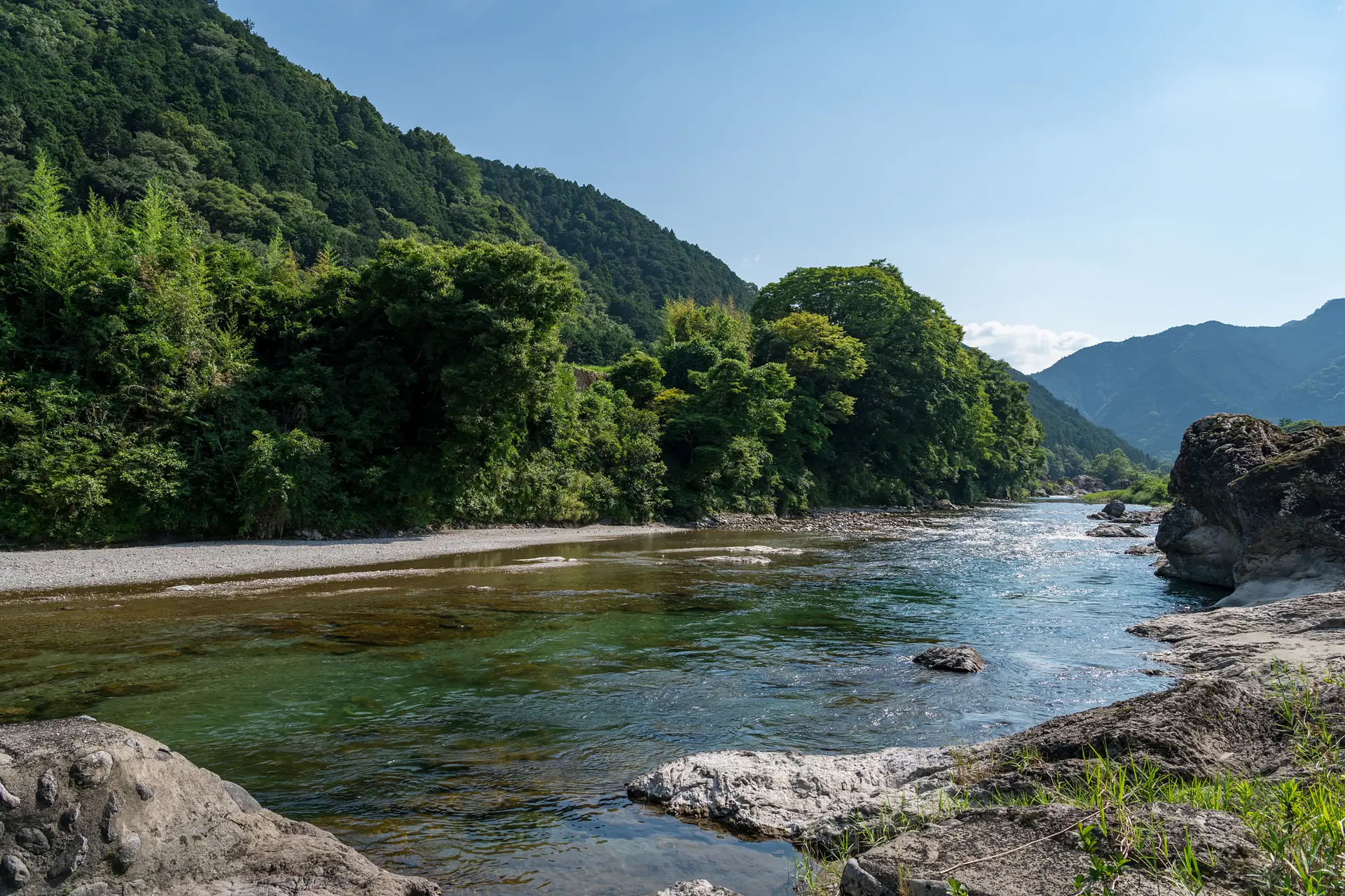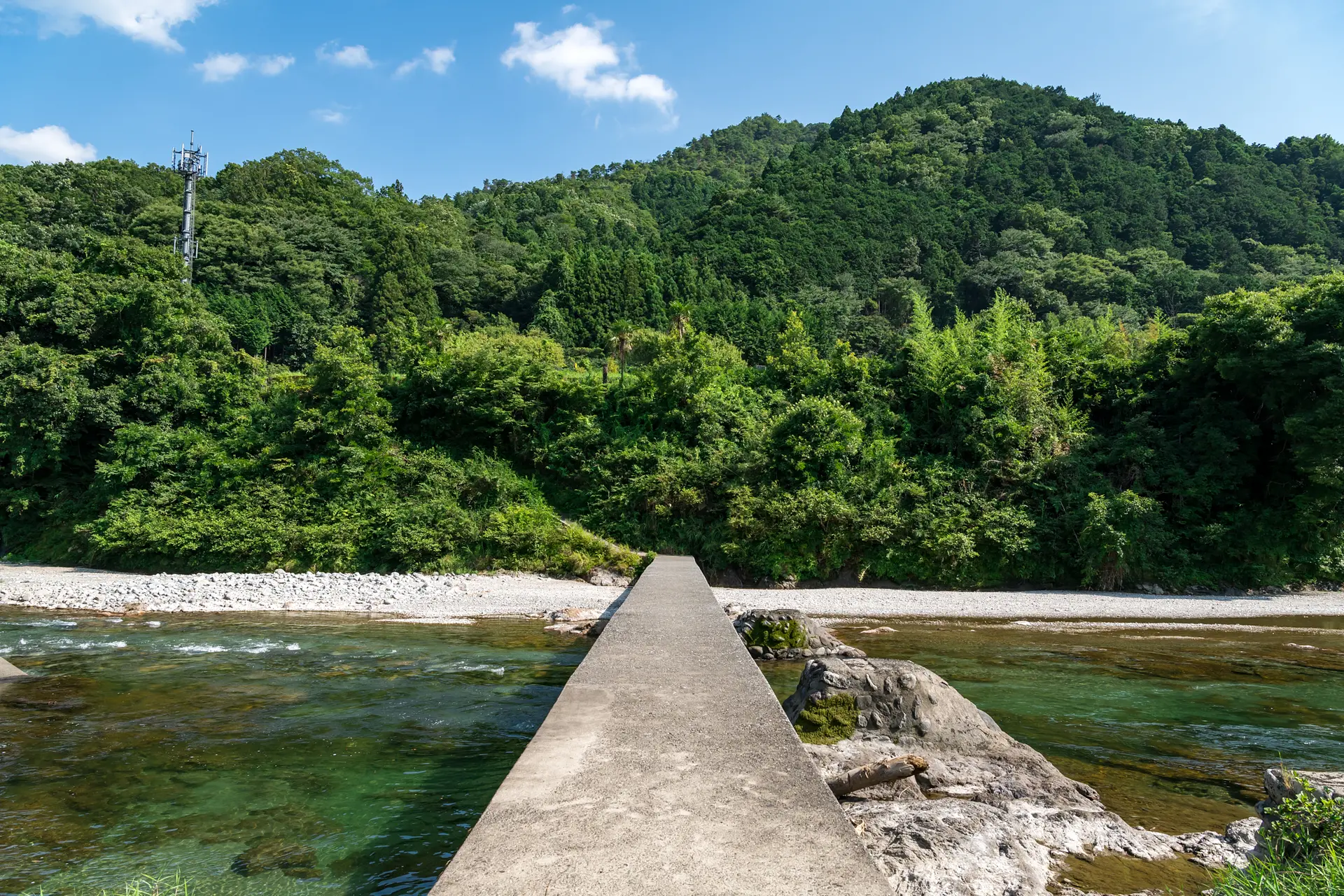 流れる川と沈下橋(潜水橋)の景色は【松阪市飯南地区の沈下橋】です。この他にも三重県には沈下橋が各地に点在します。美しい沈下橋の風景について、以下のリンクからチェックすることができますよ!👇