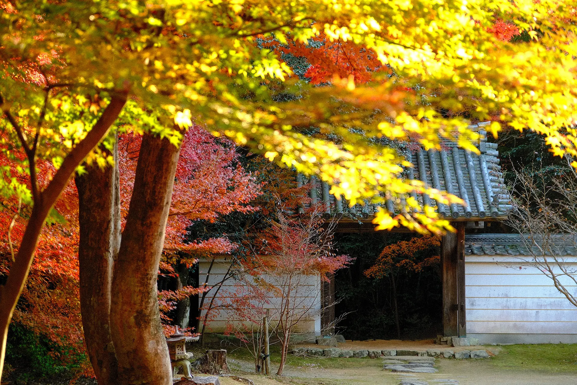 山門の手前の紅葉はもちろん、門の奥からのぞく紅葉たちも一緒に撮るのも良いですね!(画像1枚目)