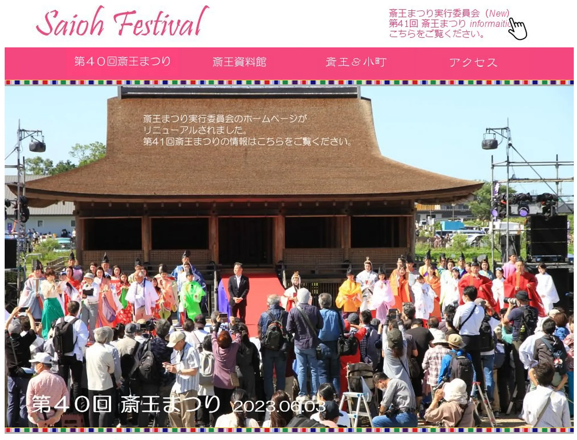 (こちらのページの「第41回斎王まつり開催決定しました。」のお知らせに続いて掲載されています。)