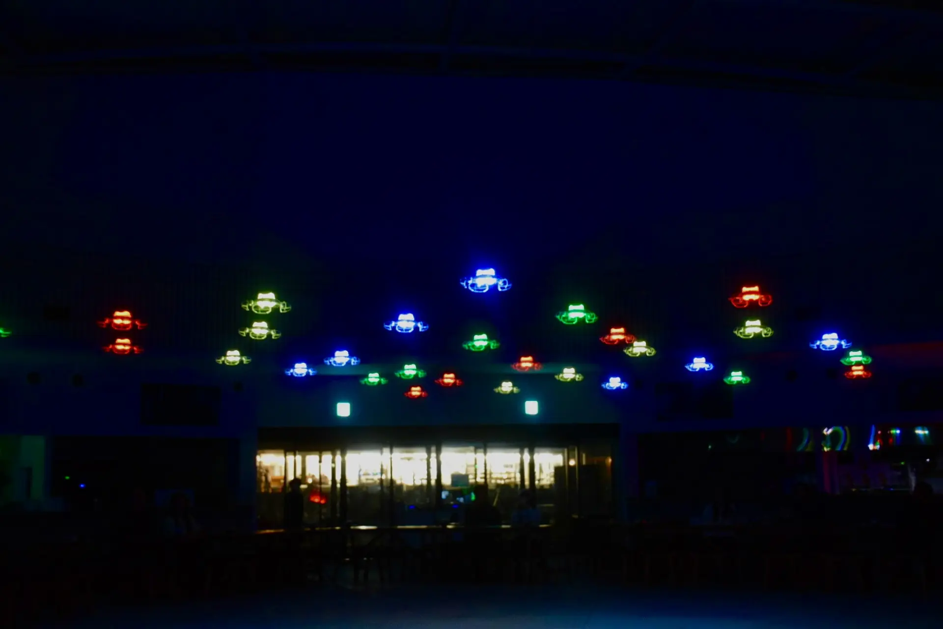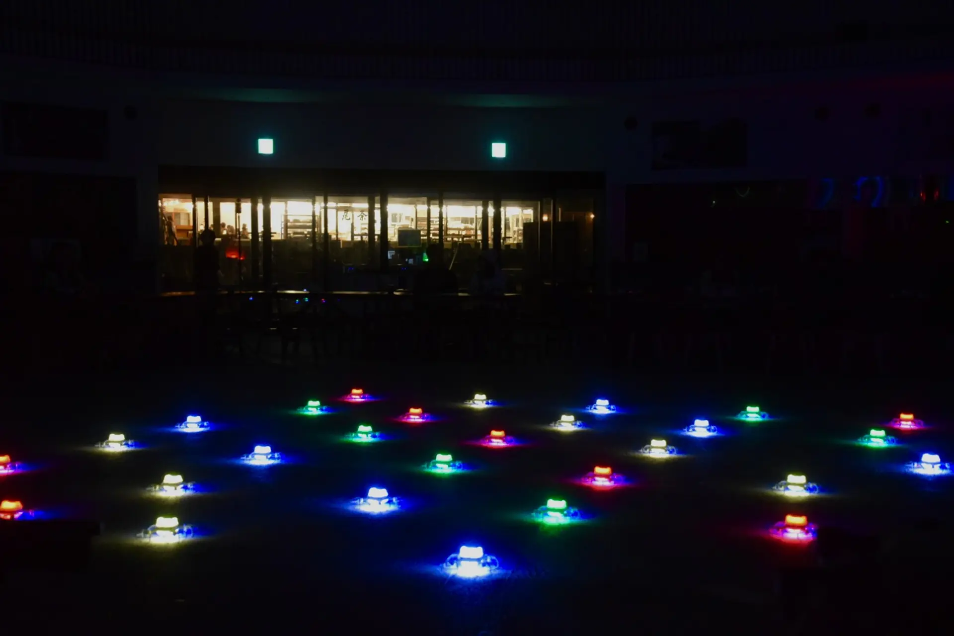 室内の暗闇の中でドローンで彩られた幻想的な空間、そしてドローンが飛び立つショー(30台、約5分)を楽しむことができます♪