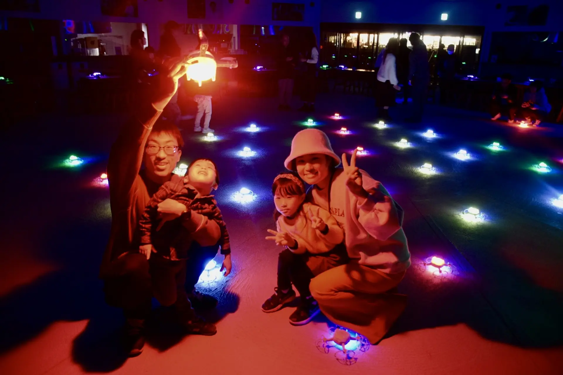 なんと!ドローンショー終了後には、実際に輝くドローンを手に取り、一緒に撮影することもできます。子供も空飛ぶ物体に興味津々になること間違いなしですよね。