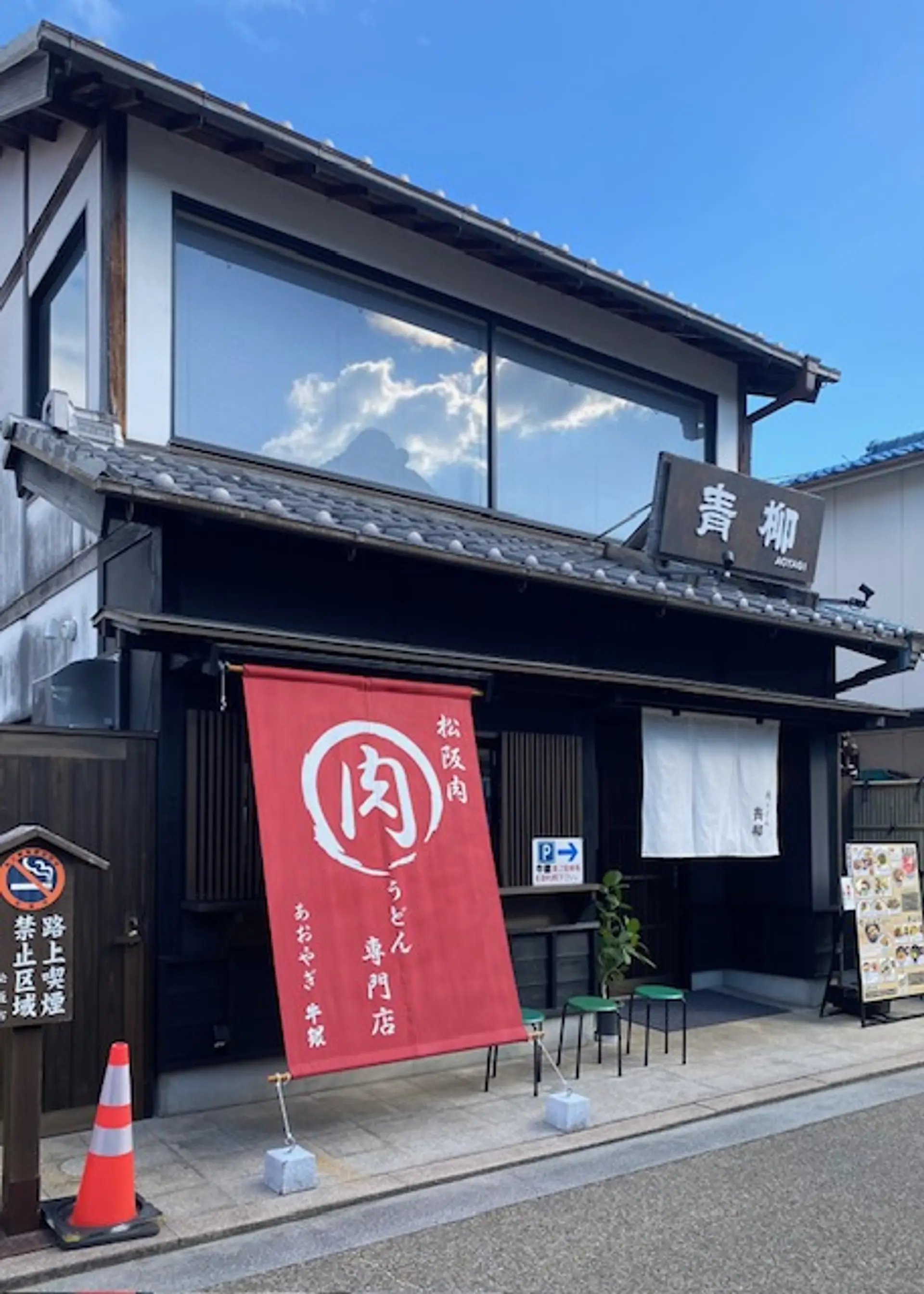 肉うどん専門店「青柳」は明治時代から続く松阪肉料理の老舗、牛銀本店が展開しており、カジュアルな空間で手軽に肉うどんを味わうことができるお店。