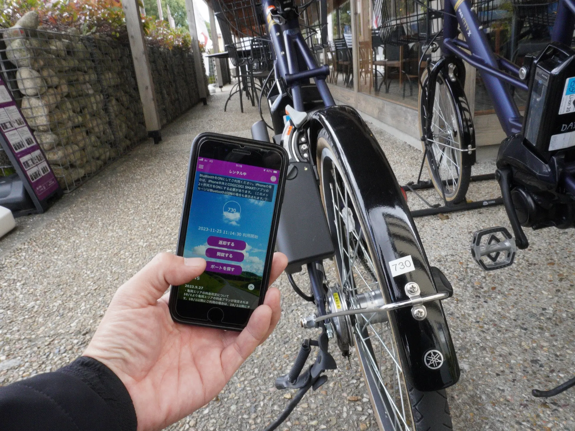 伊勢市内にサイクルポートが5か所あり、スマートフォンから24時間いつでも手軽に電動アシスト自転車が借りられるんです。