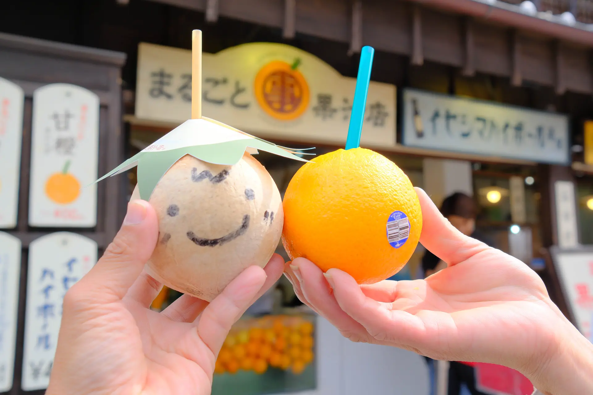 その場でオレンジやグレープフルーツを何も加えずまるごとグリグリっと搾って提供される、新感覚のジュース。搾りたての果汁は新鮮そのもの!ダイレクトに果物の味わいを楽しむことができ、キュートな果実を手にパチリと撮らずにはいられません!