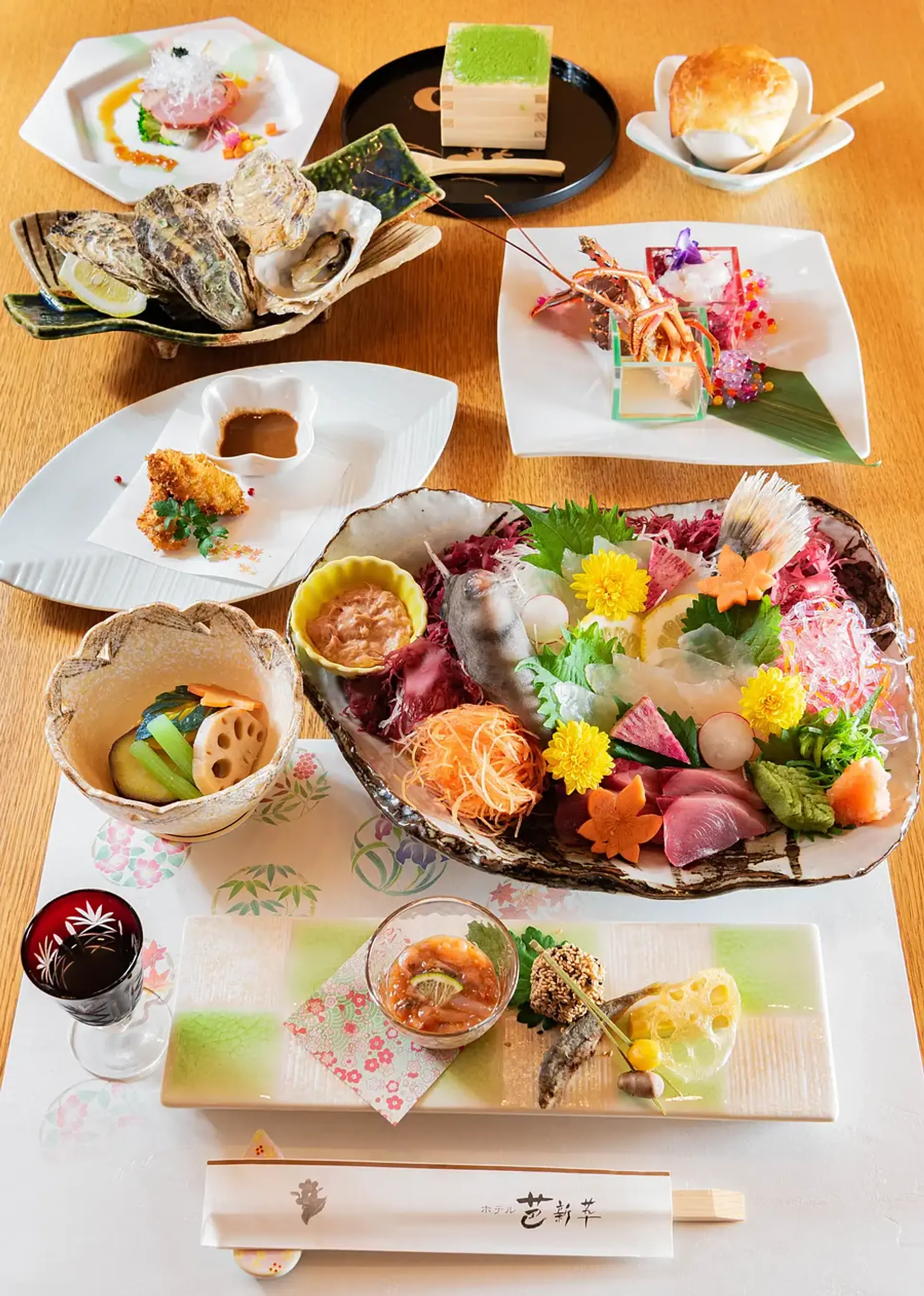 海のフォアグラ「カワハギ」はもちろん、浦村産の蒸し牡蠣や牡蠣フライに、伊勢海老の頭や殻からとった濃厚なだし汁の鍋料理など、地元食材・旬の味覚が勢揃いの内容です!詳しくは👇のレポート記事をチェック!