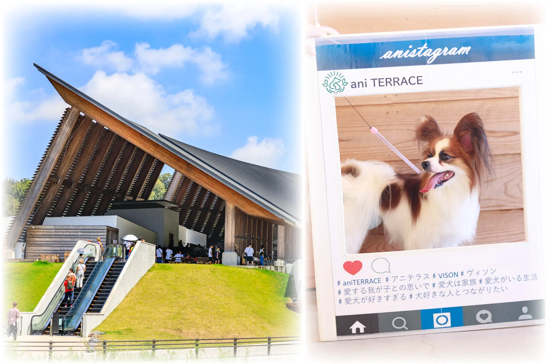 広大な敷地を誇るVISONには、ドッグラン併設の施設やペットと食べ歩きを楽しめるエリアなどが充実しています。
