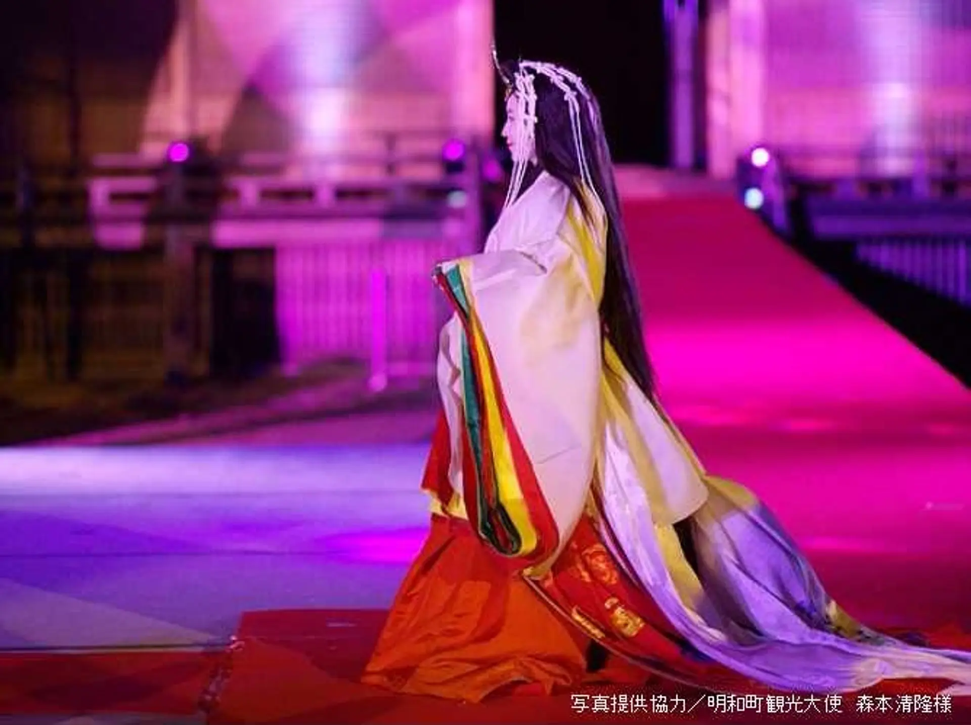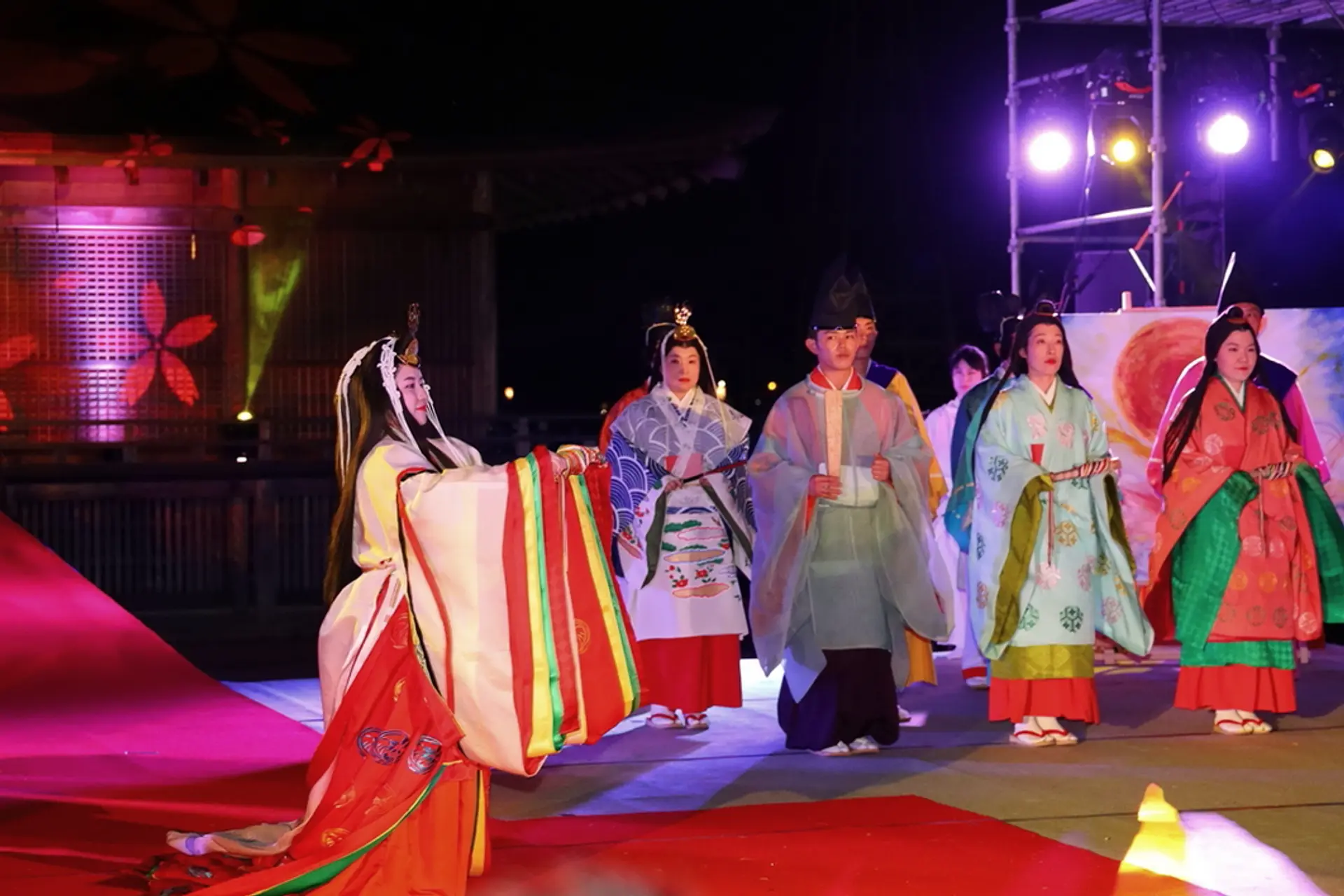 夜のステージも幻想的で艶やかですね。平安時代にタイムスリップしたような感覚に酔いしれること間違いなしです!!