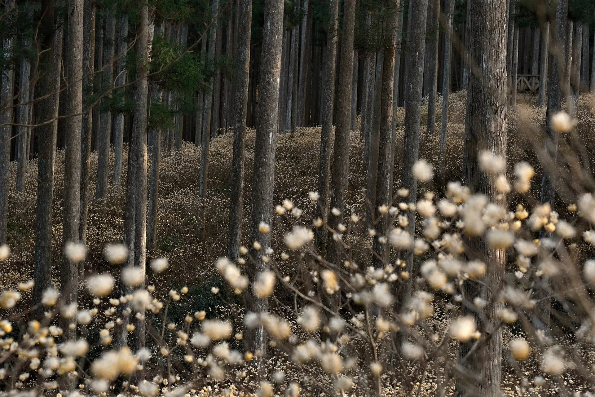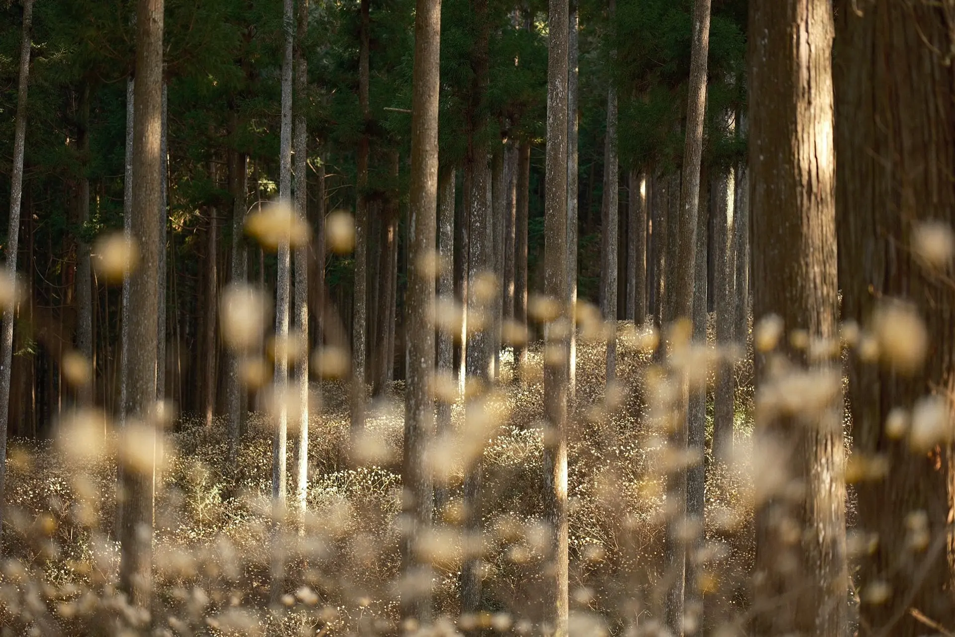 森の中に広がる白いポンポン状の花が広がる絶景は、まるで空中を漂う白銀の妖精のようで、訪れる人々を優しい気持ちにさせてくれます。